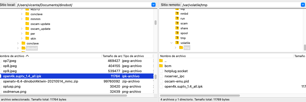 Una vez descargada descomprimimos el archivo y lo introducimos en el directorio /tmp de nuestro receptor