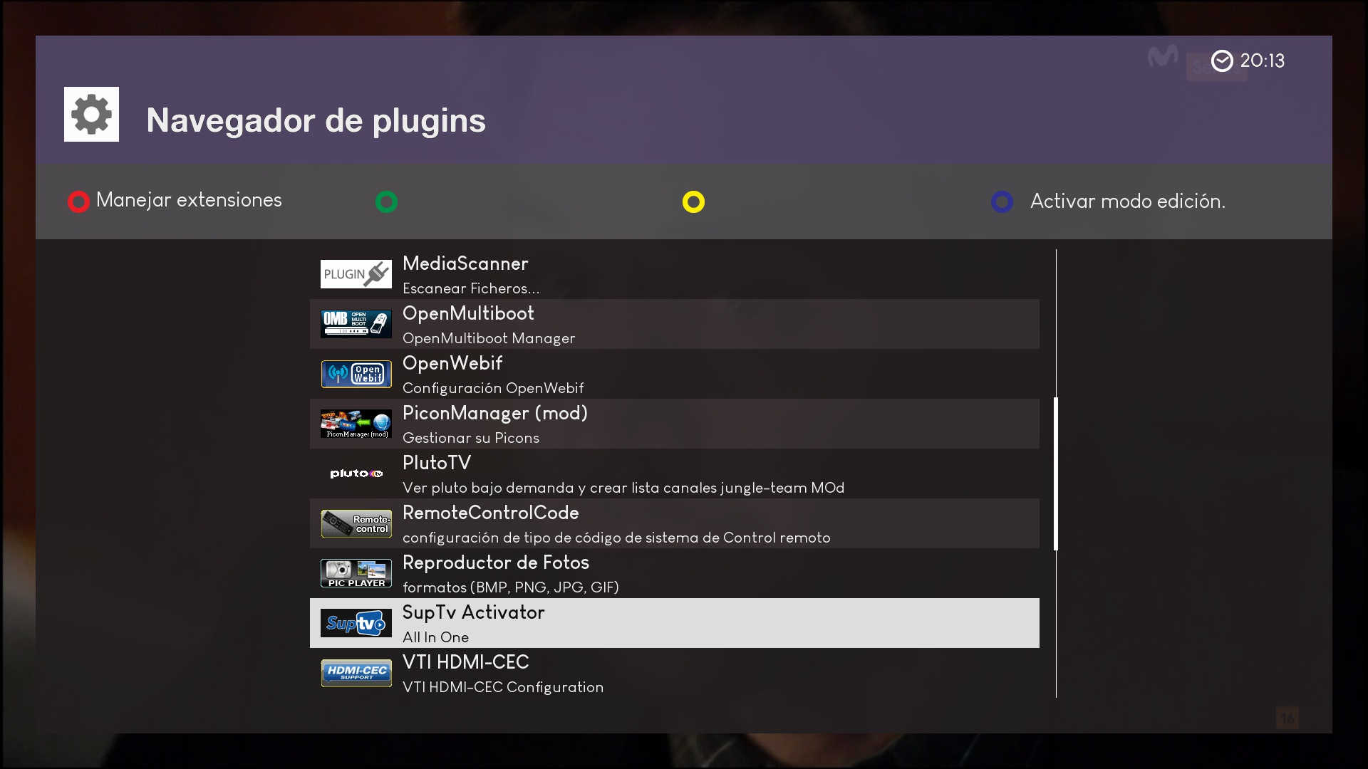 Tras la instalacion y reinicio del receptor, ahora en menu + Extensiones nos aparecera el plugin activador para supcam