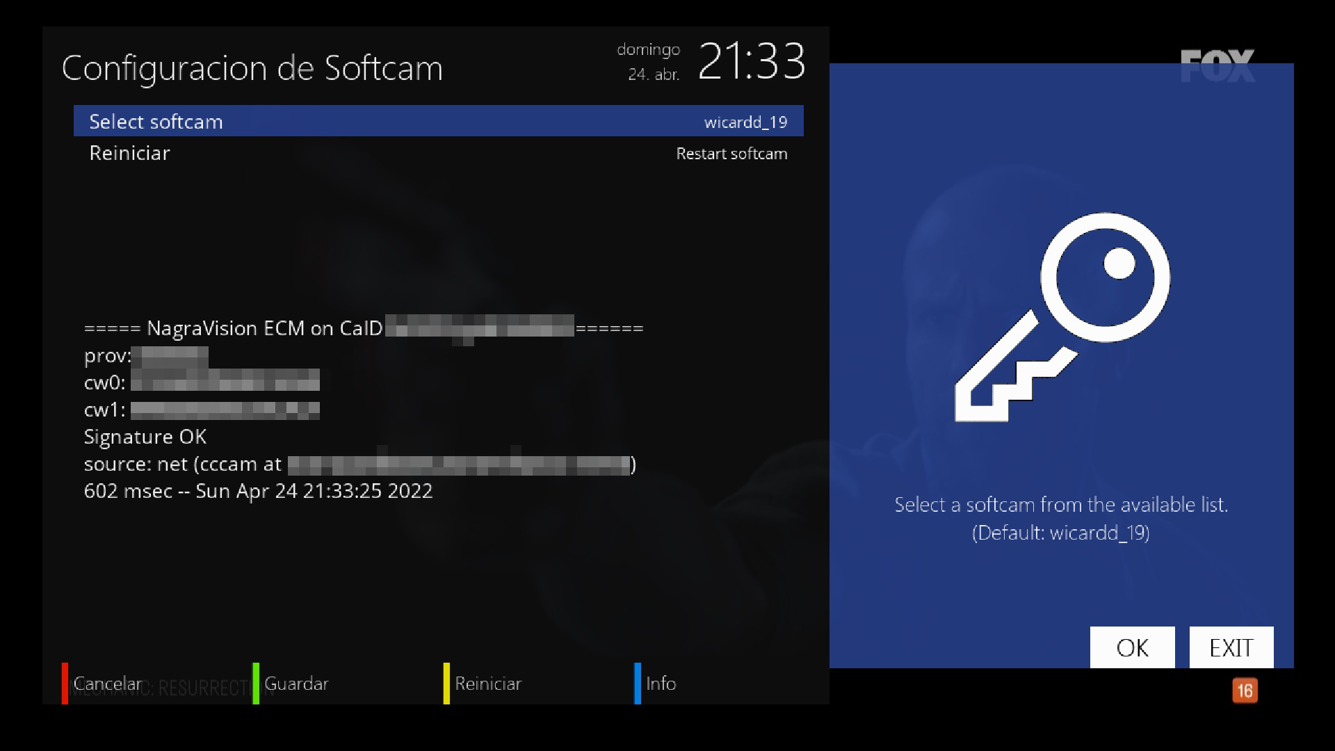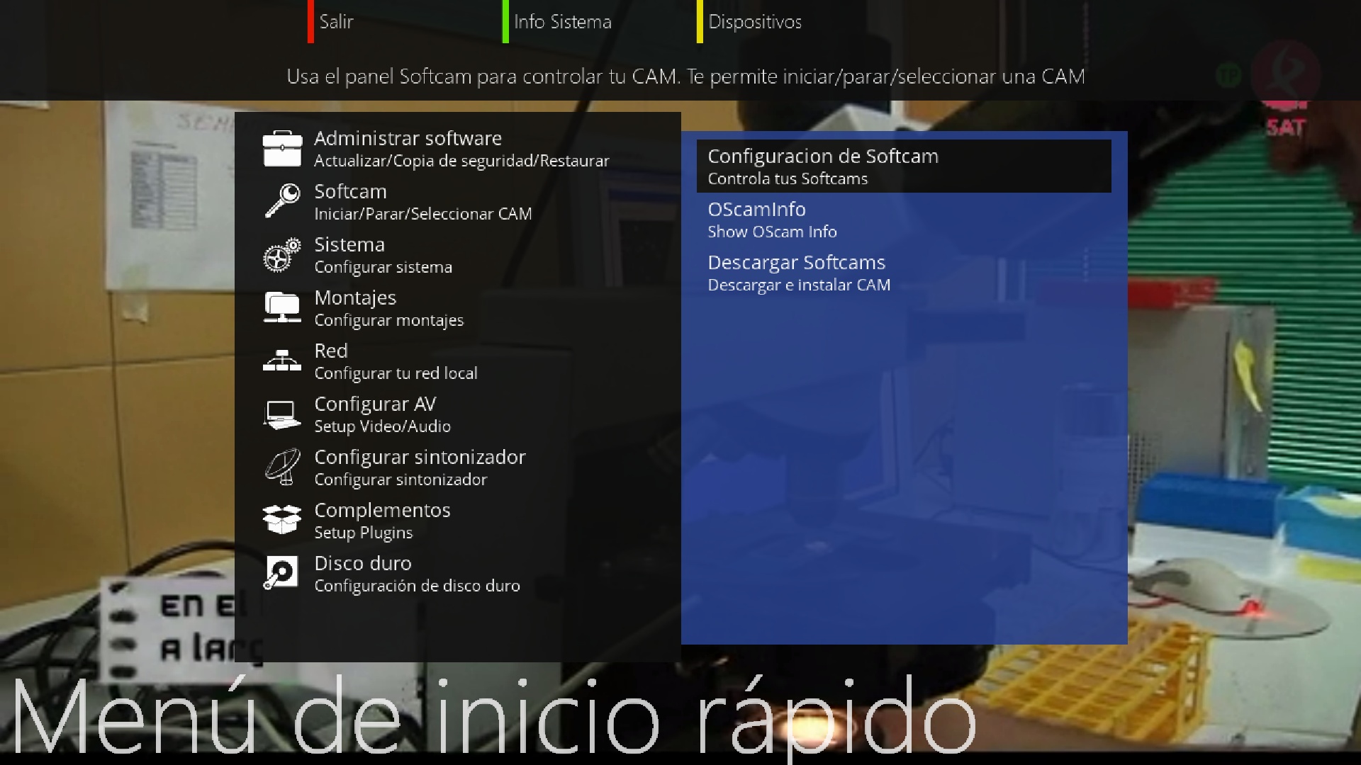 Una vez que lo tenemos todo preparado ya solamente nos queda su activacion, para ello pulsamos sobre menu + boton azul + softcam