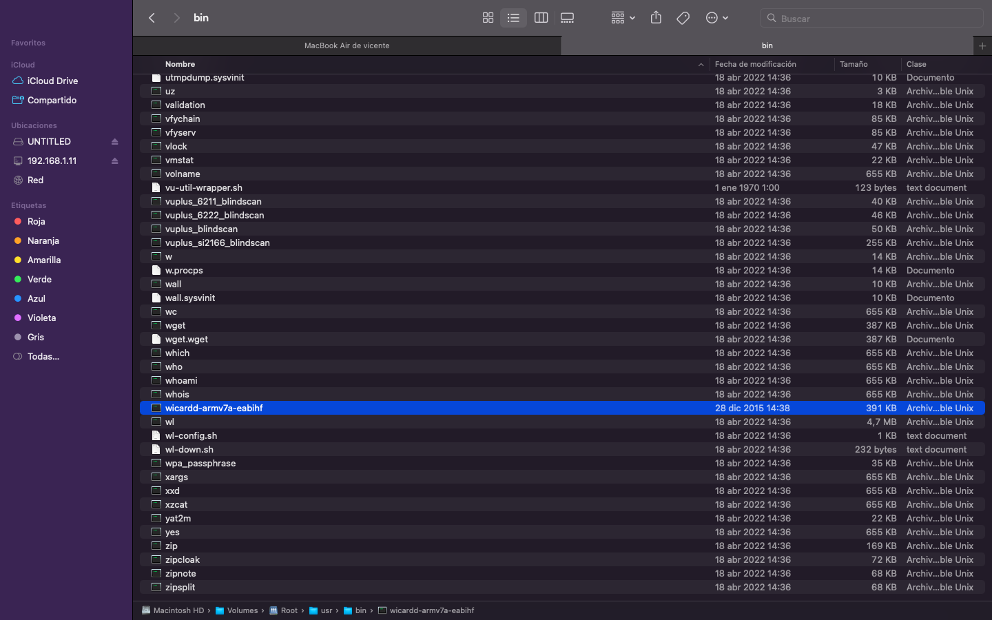 Si observamos que obtenemos respuesta sin error como muestra la captura, ya tenemos el binario de wicardd correctamente introducido en nuestro receptor.