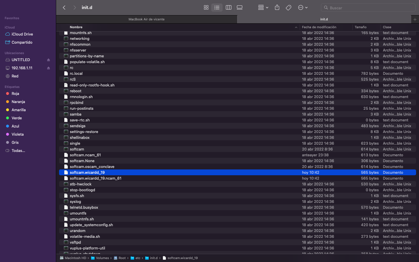 Una vez ya hemos creado nuestro archivo daemon, lo introducimos como comentemos en /etc/init.d con el nombre softcam.xxx, en este ejemplo: softcam.wicardd_19
