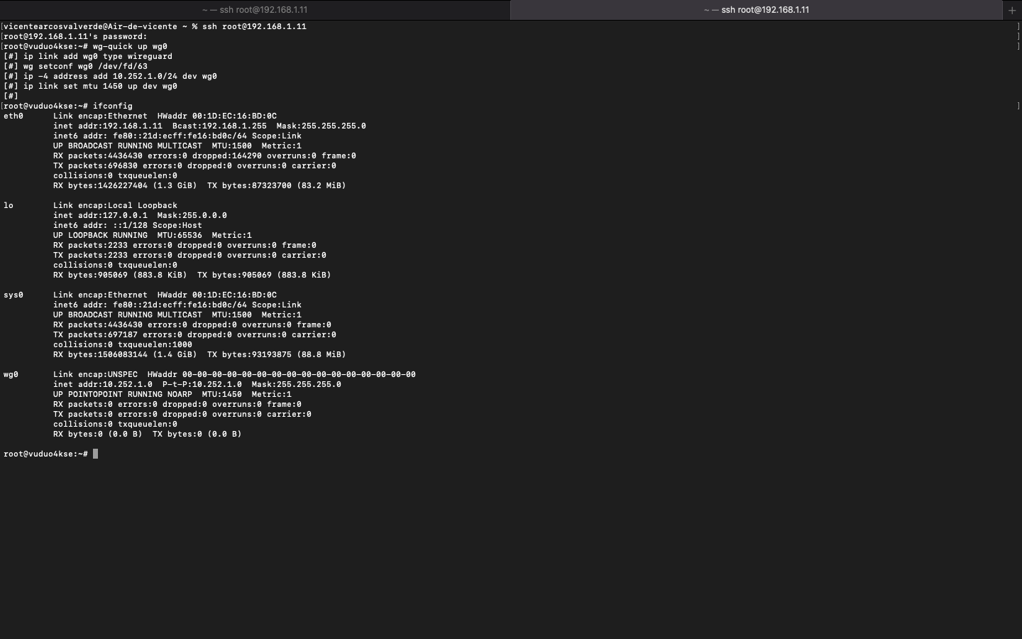 Tras ello si ejecutamos el comando ifconfig observaremos que se nos creo la interfaz web wireguard