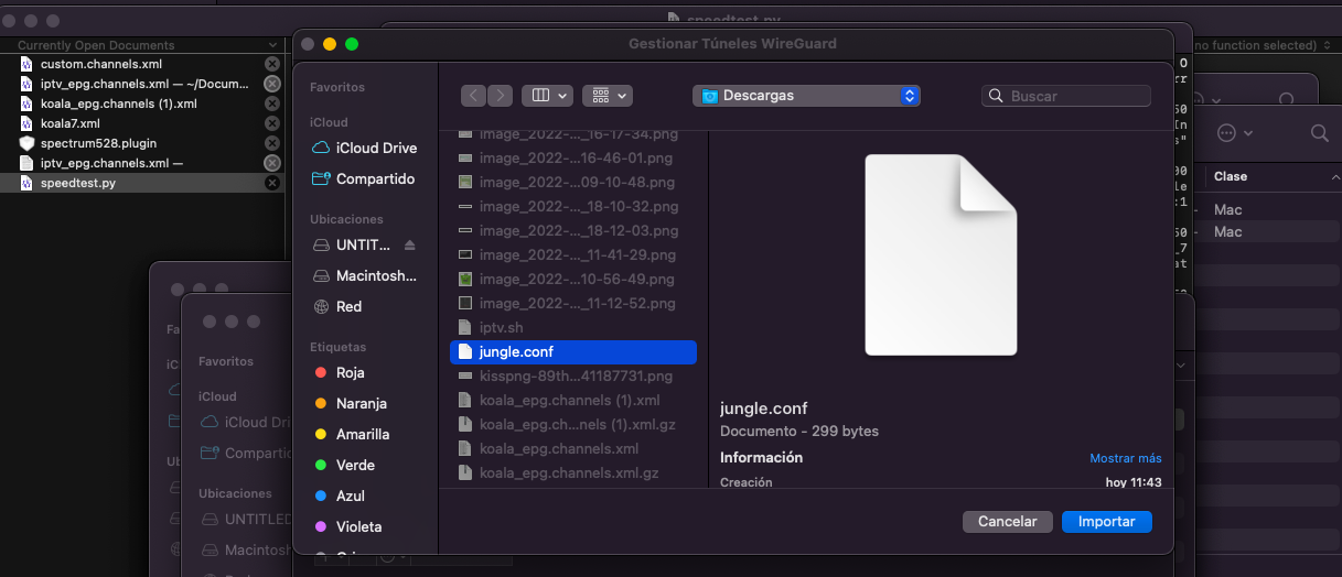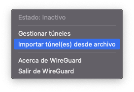 Ahora un ejemplo de que todo esta correcto usando wireguard en el pc, importamos la configuracion cliente wireguard del receptor