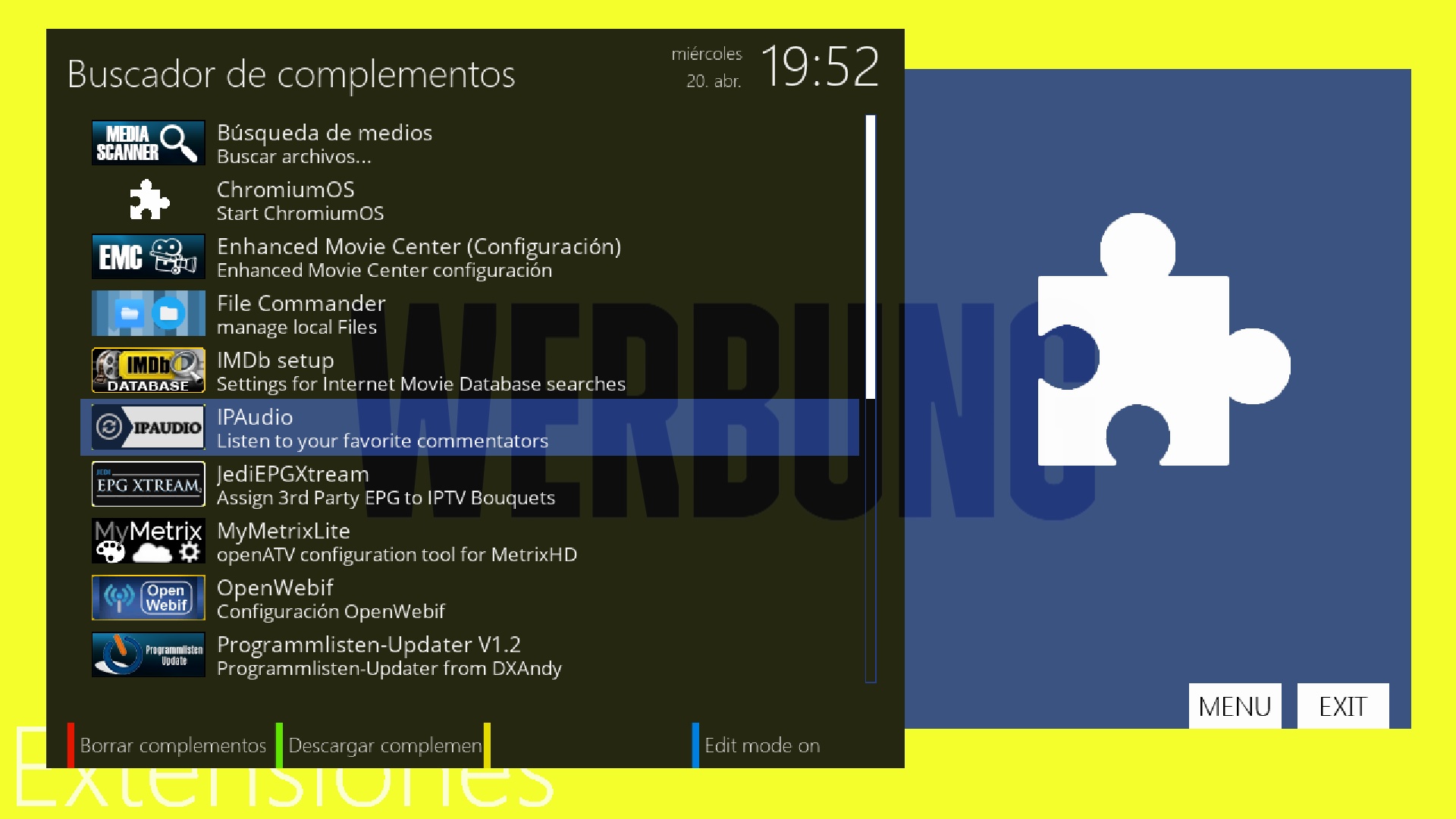 IPAudio es un plugin enigma2 que nos permite asignar emisoras de radio streaming (enlaces web), a canales de nuestro receptor enigma2, interesante complemento para poder asignar audio diferente al canal que deseemos. Es un plugin que fue desarrollado hace casi unos dos años y que tiene soporte actual, compatible con python 2 y python 3.