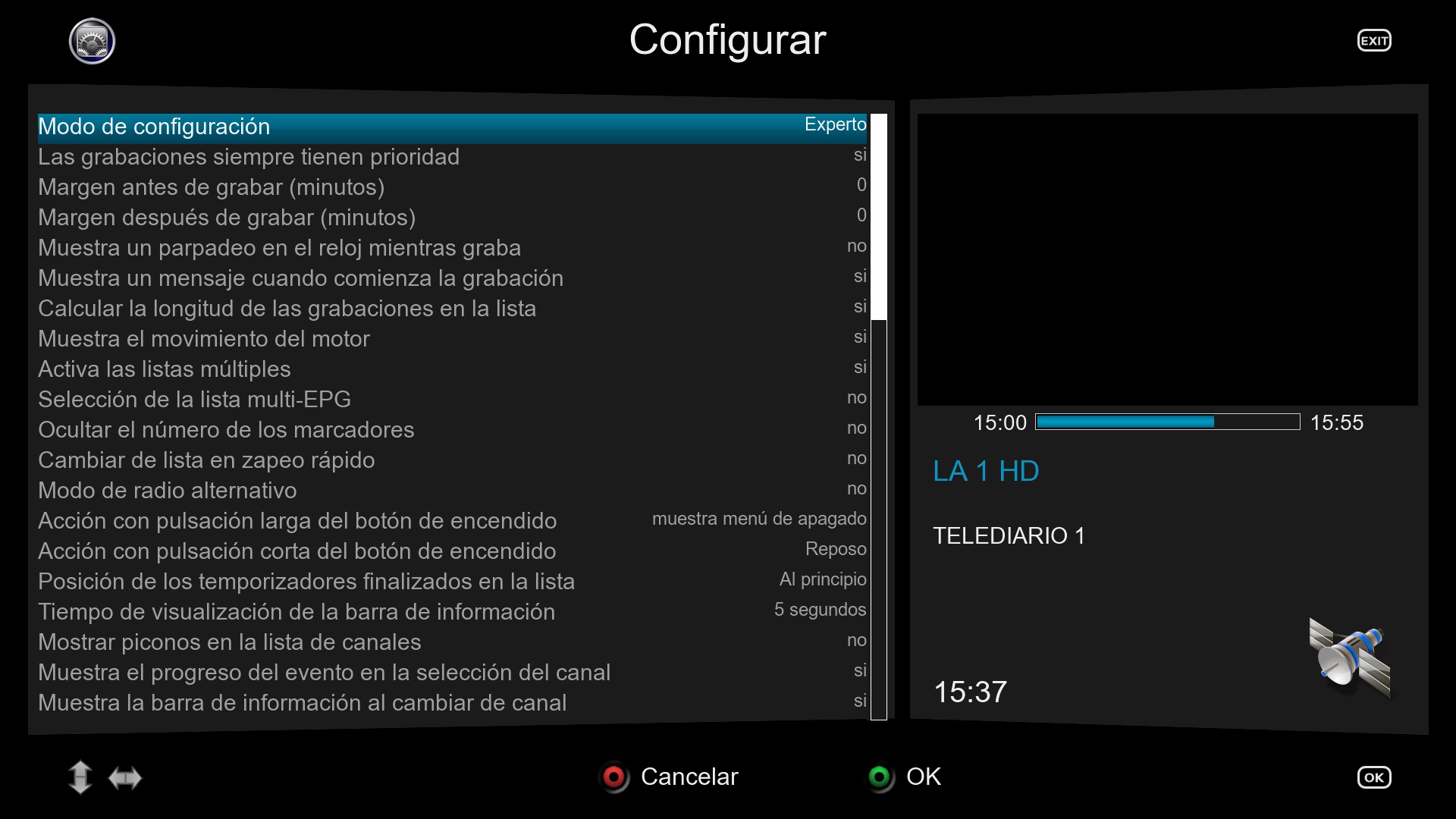 Para terminar en Modo de configuracion seleccionamos experto y boton verde para guardar los cambios