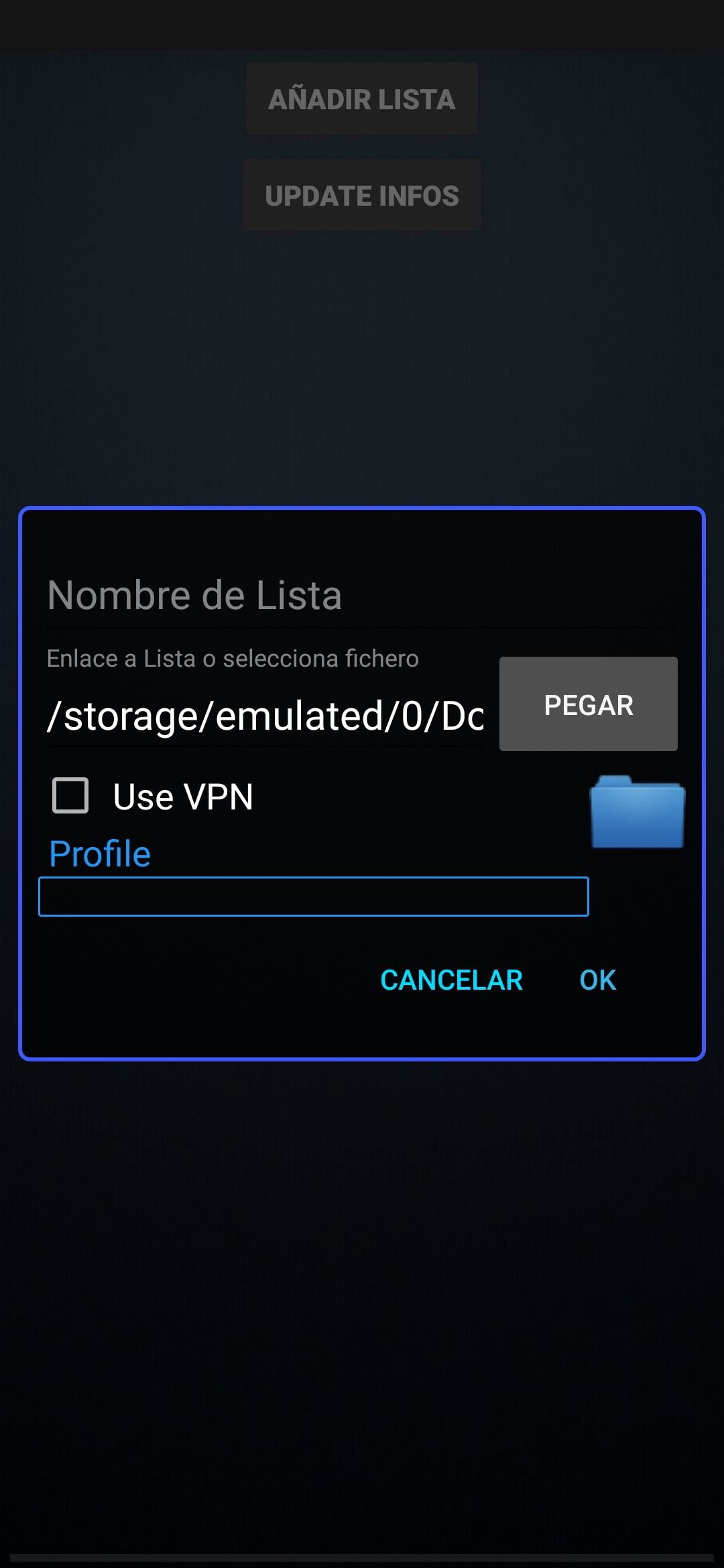 Introducir lista canales m3u