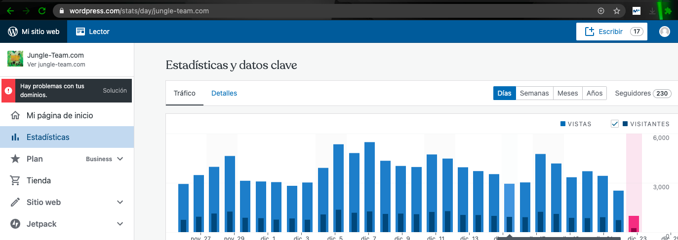 - Teniendo en la actualidad un radio de media de unas 3000 visitas a nuestros articulos por dia: