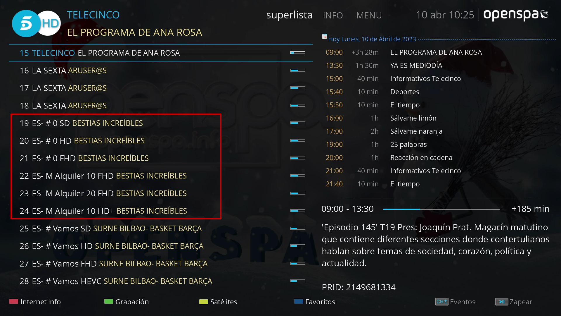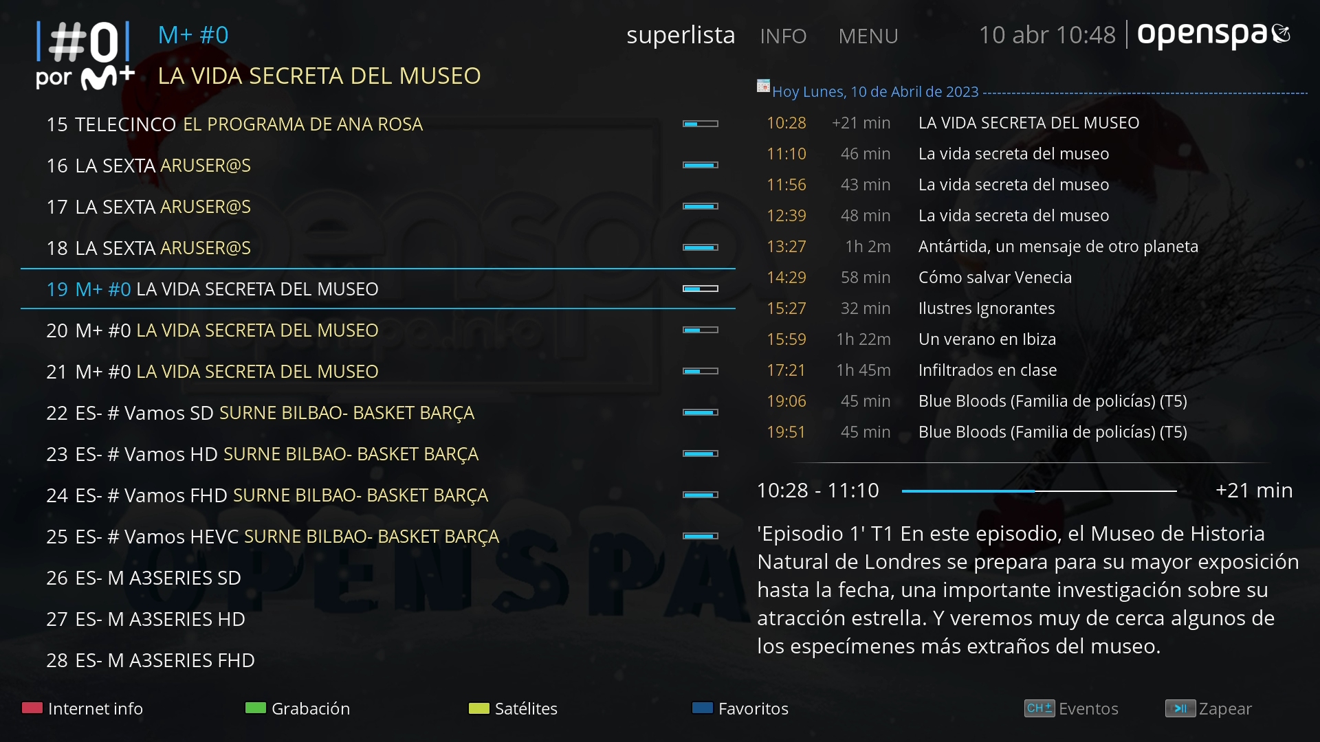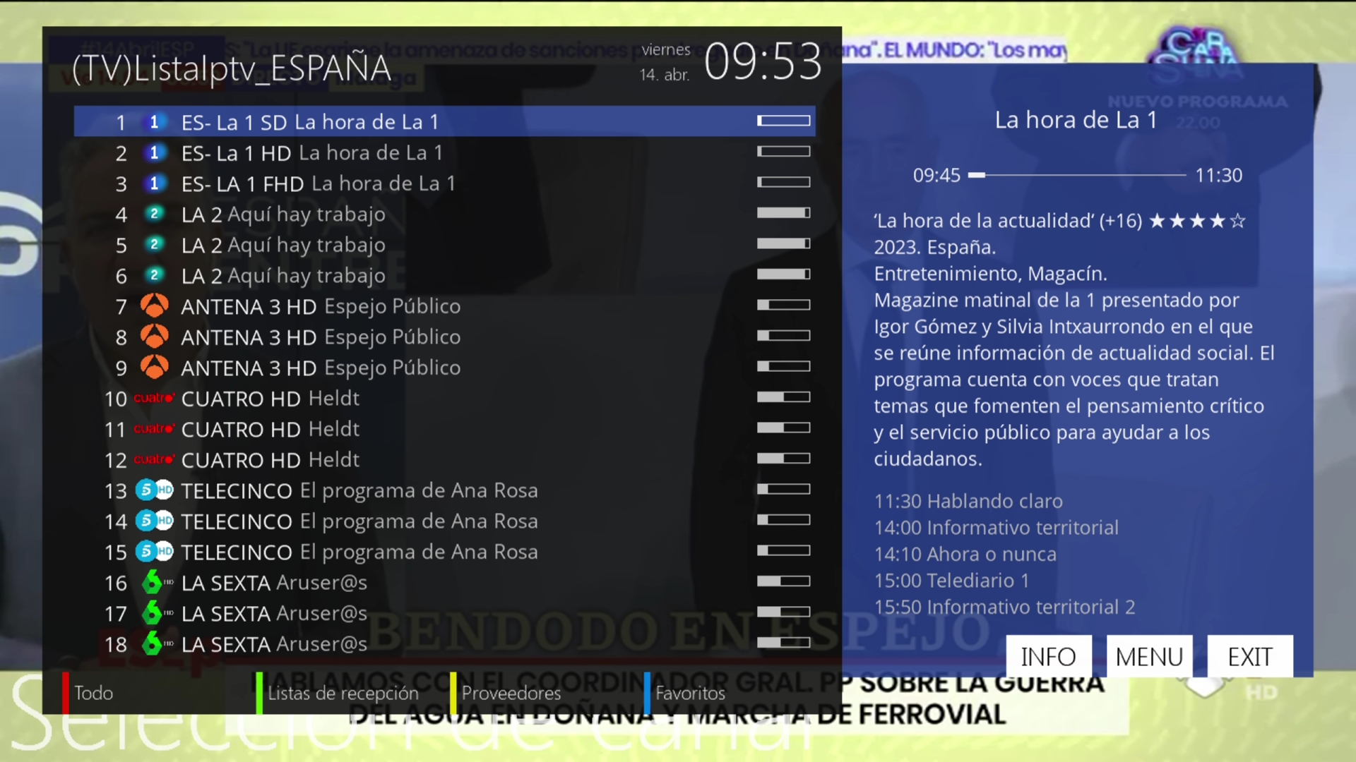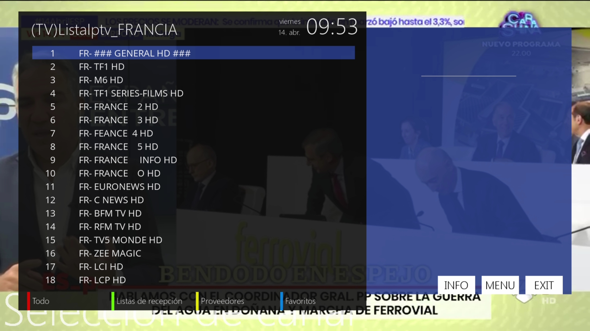 En este ejemplo tras la ejecución nos aparecera en nuestra lista canales en ultimo lugar el favorito creado que adoptara el nombre de la lista m3u que introdujimos, y ya todo ordenado y parcheado con lo que proporcionamos por defecto, en este ejemplo: