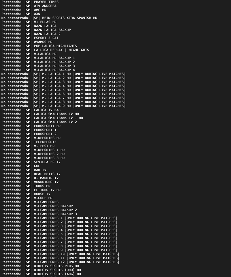 En este caso que nuestra lista no tenga prefijos por que es corta, simplemente para permitir el procesamiento de canales sin prefijos añadiriamos en el ALLOWED_PREFIXES «» de esta manera procesara los canales sin prefijo, ejemplo:
