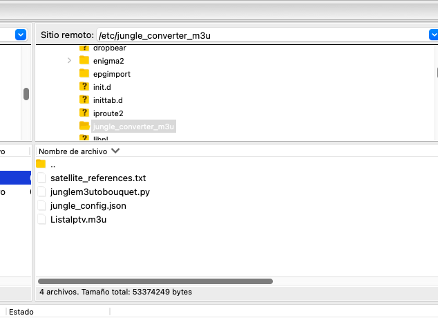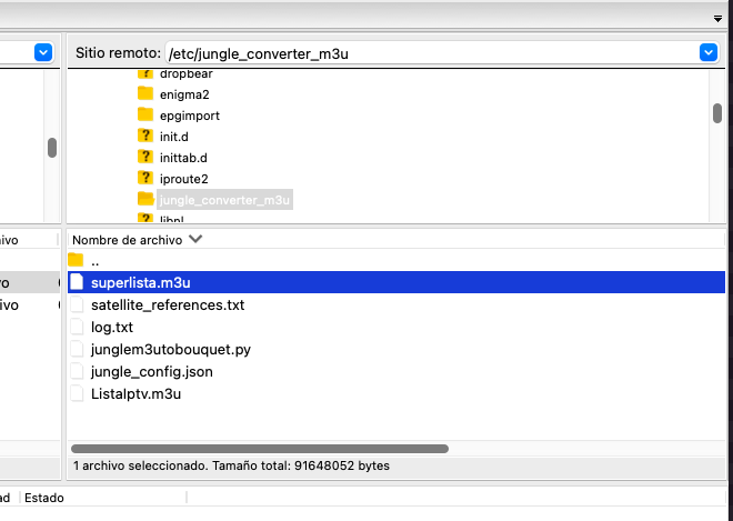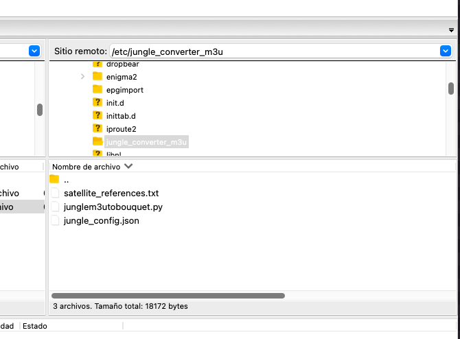 Una vez realizada la instalación se nos habra creado en nuestro receptor enigma2 un directorio /etc/jungle_converter_m3u y en su interior encontraremos tres archivos: