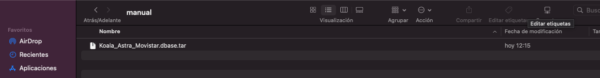 1. Introducimos el archivo descargado Koala_Astra_Movistar.dbase.tar en un pendrive