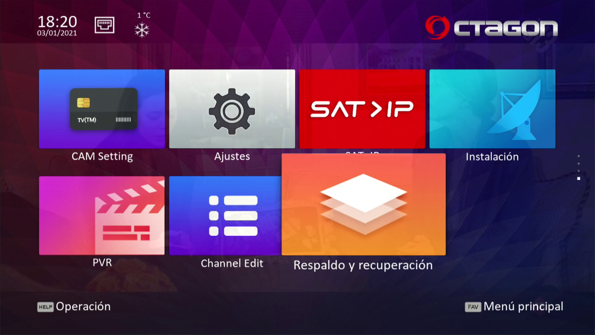 3. pulsamos en el menu del receptor en Respaldo y recuperacion