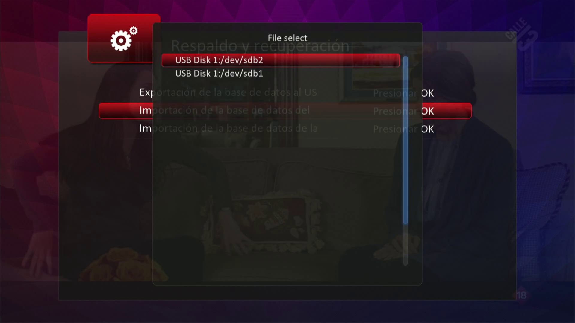 5. Seleccionamos el usb donde introdujimos la lista canales en formato .tar y la seleccionamos
