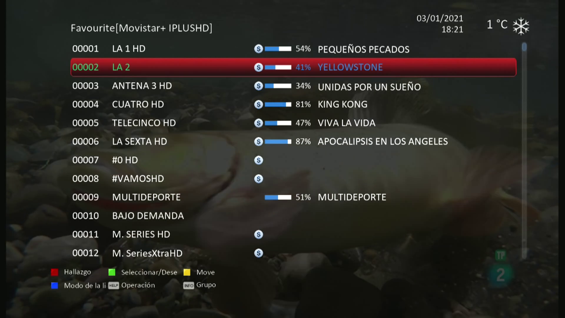 | Favorito Movistar+ IPLUSHD | Ordenacion y numeracion oficial |
