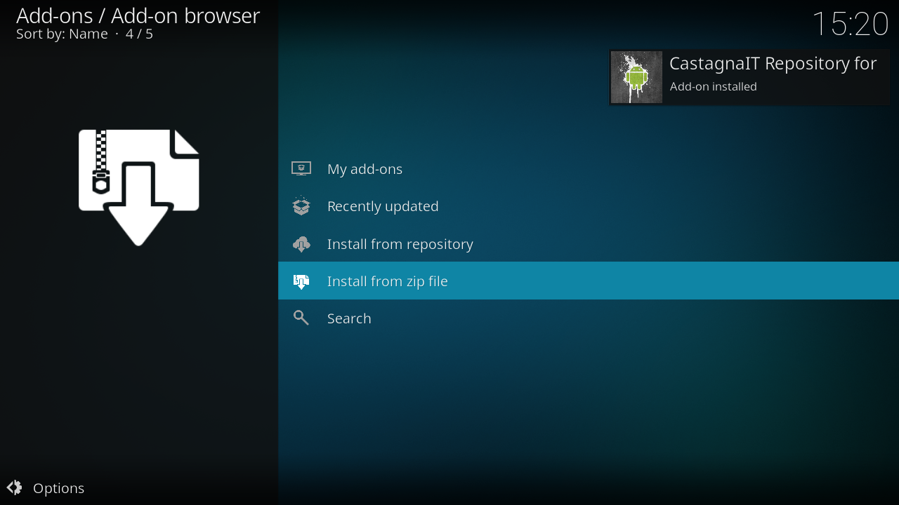 Lo descomprimos en el directorio /media/hdd o /media/usb dentro de la carpeta .kodi