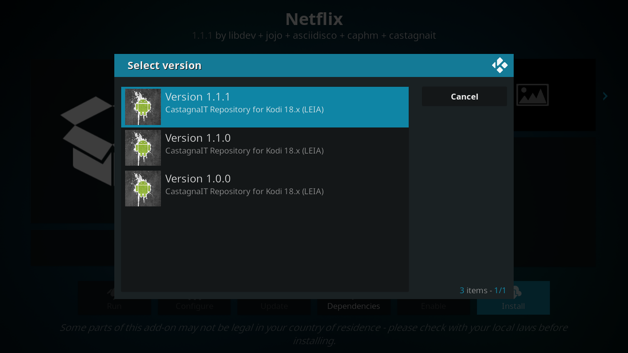 Al realizar la instalacion de netflix desde su repositorio oficial hay varias versiones, instalar sobre repositorio 1.1.0 que es el que funciona correctamente.