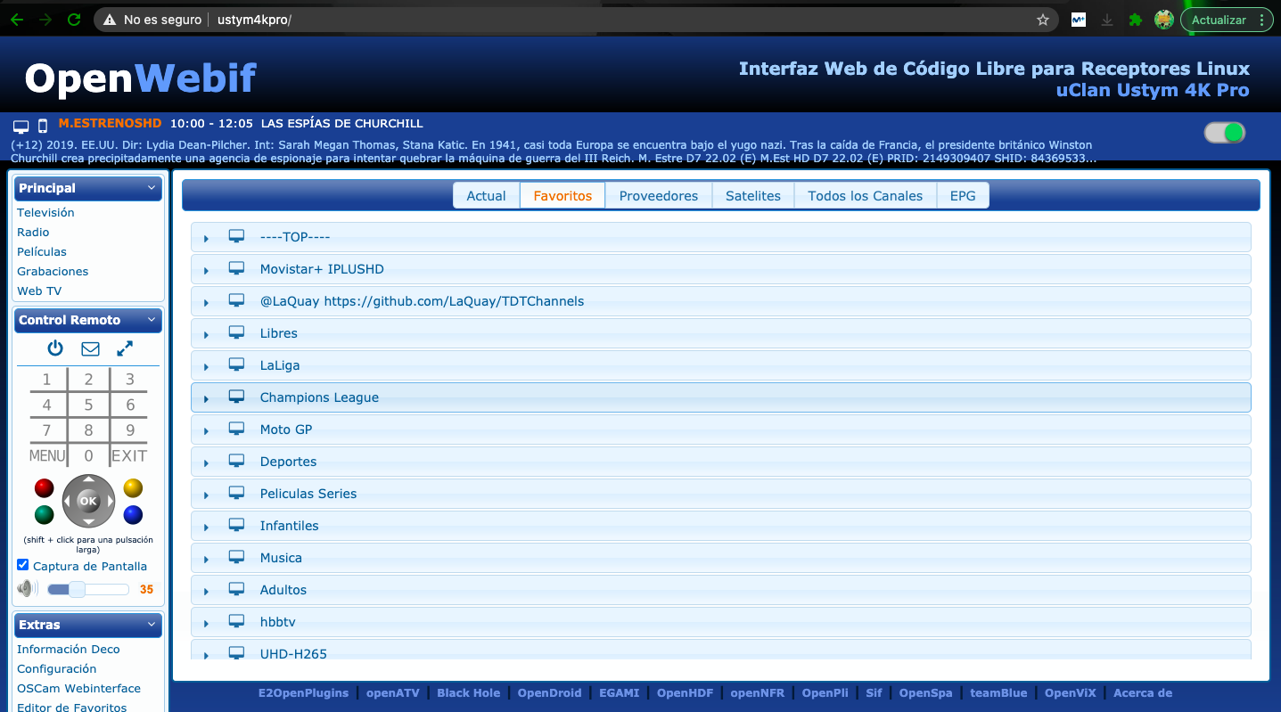 de esta manera hemos accedido a openwebif de nuestro receptor