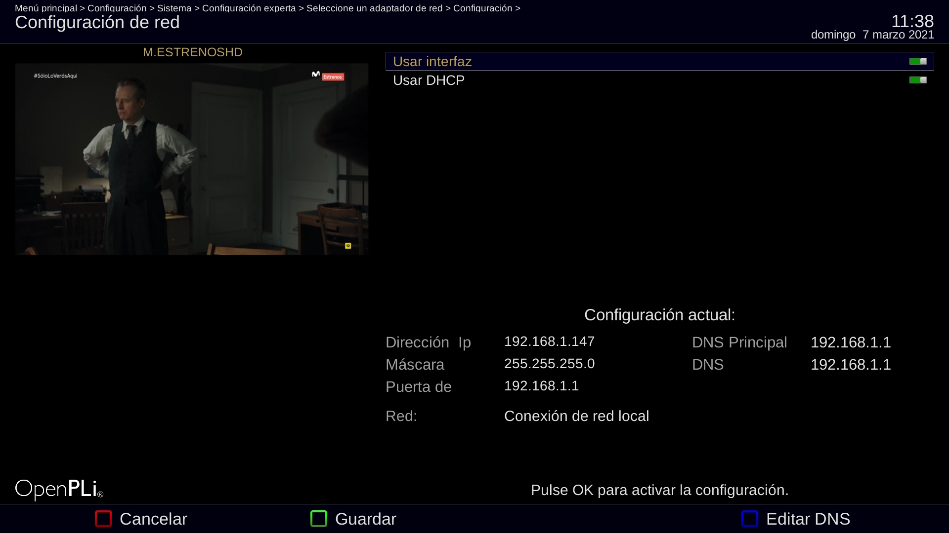 En primer lugar debemos conocer la ip que tiene nuestro receptor en red, esto es tan facil como entrar en el menu de red y nos aparecera ip de nuestro receptor en este ejemplo 192.168.1.147