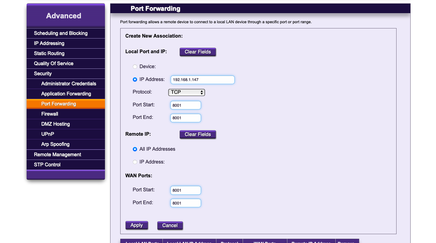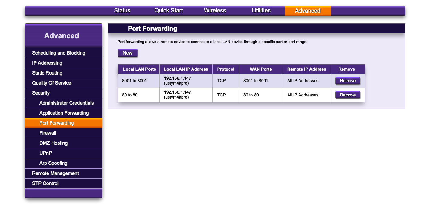 - Si usamos aplicaciones tipo dreamplayer, gigablue player, etc… que necesitan acceder a la api de webif, entonces necesitaremos redirigir el puerto 8001 y el puerto 80.