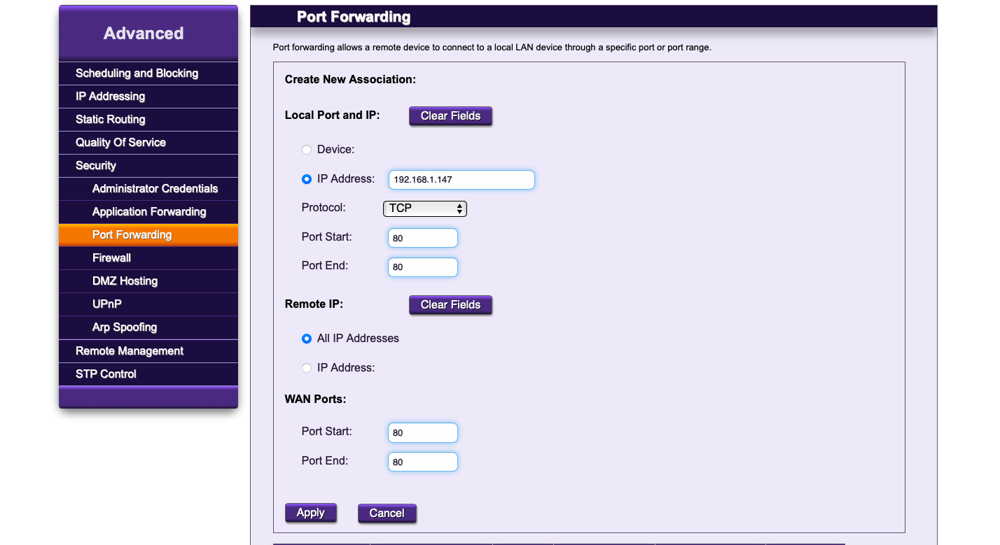 Cuando realizamos la redireccion de puertos unicamente es suficiente usar PROTOCOLO TCP