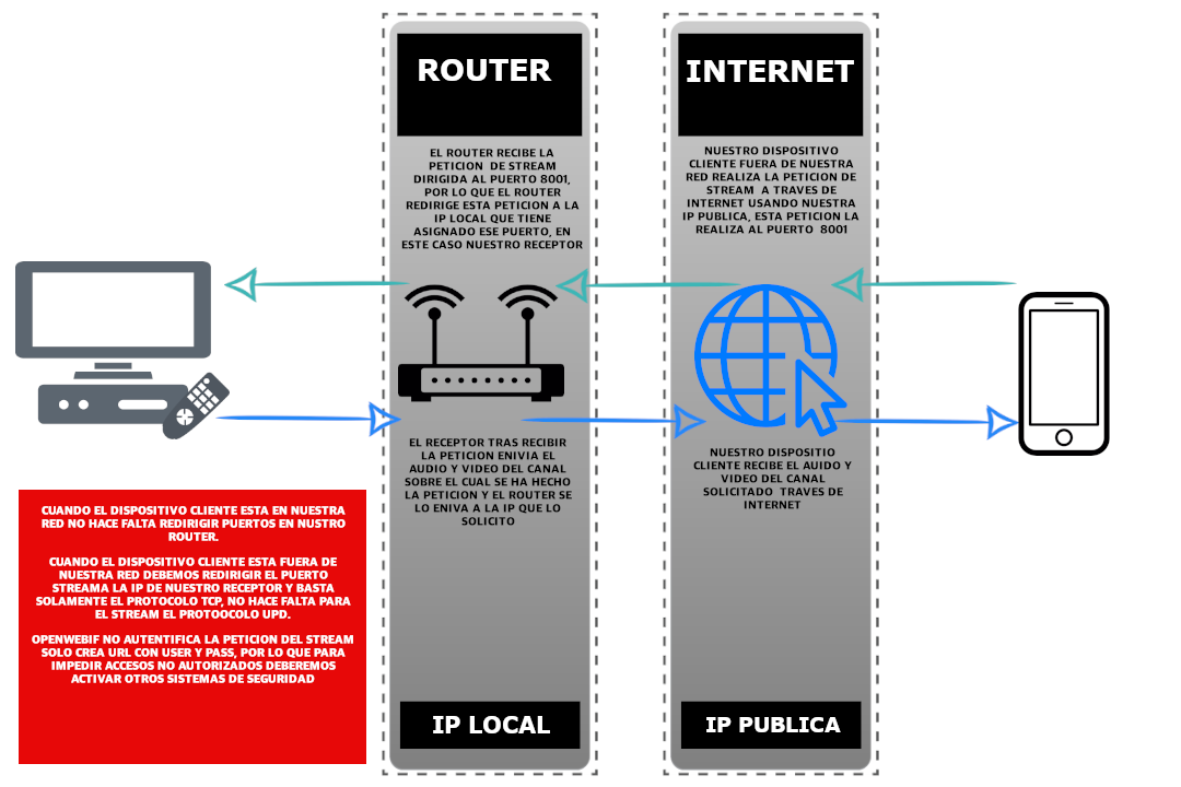 Anteriormente hemos visto como realizar streaming en nuestra red, ahora vamos a ver como visualizar los canales fuera de nuestra red. En este metodo debemos aumentar la seguridad ya que alguien podria intentar acceder a nuestro receptor.
