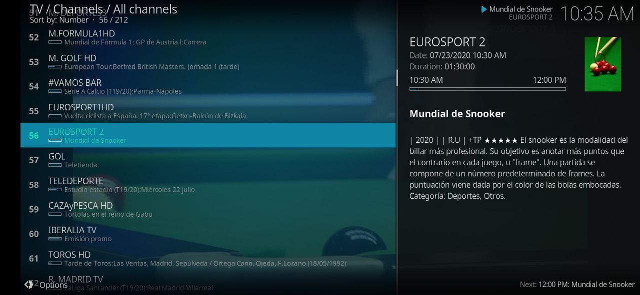 Es de los mas antiguos y consume muy pocos recursos, es bastantes estable y fluido y podemos visionar los canales de nuestros receptores enigma2 ya sea a traves de url o archivo m3u. En su contra es que no se le puede visualmente añadir epg de los canales ni picón.