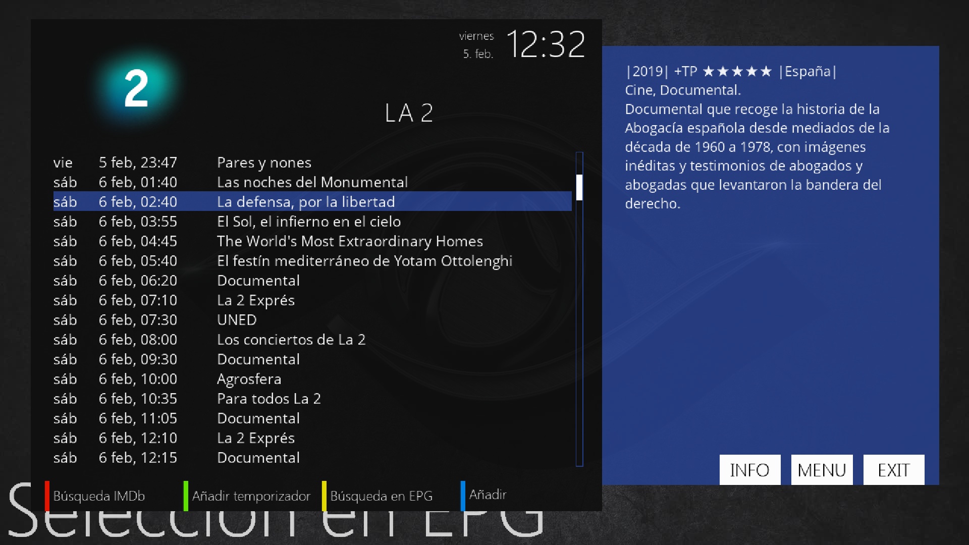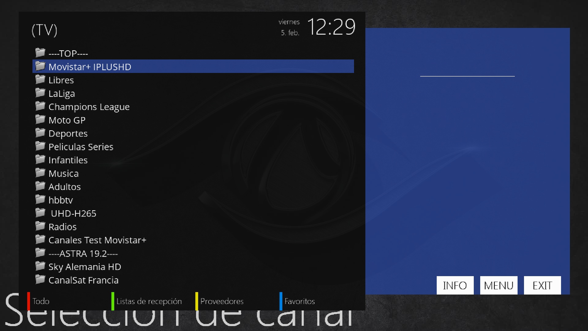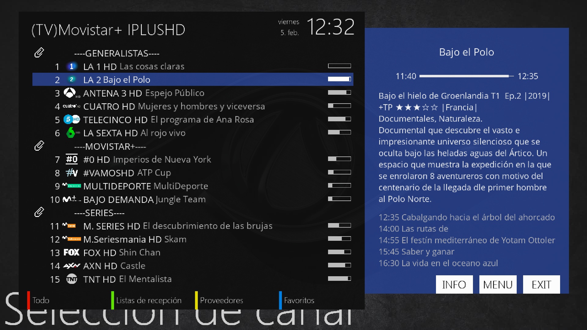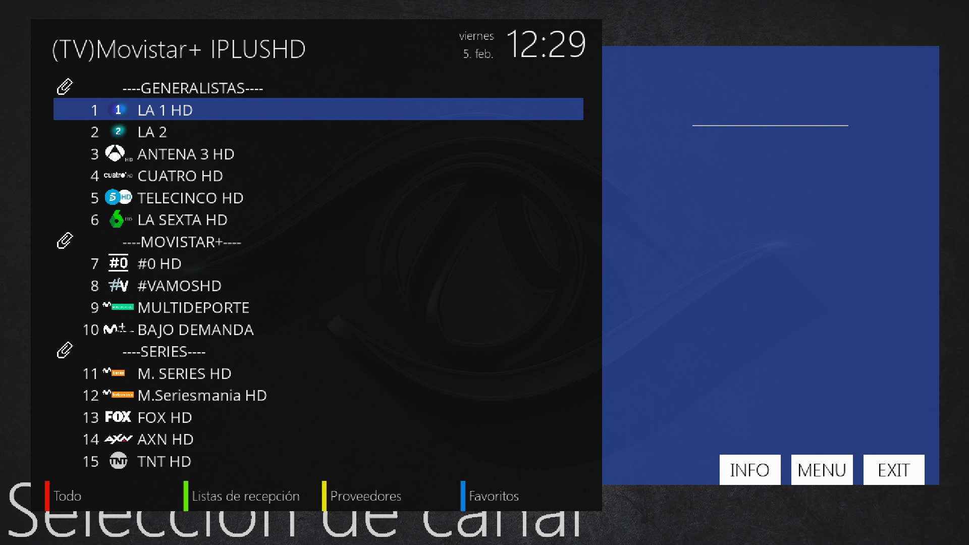 Pulsamos flecha arriba para acceder a la lista canales y seleccionamos un favorito