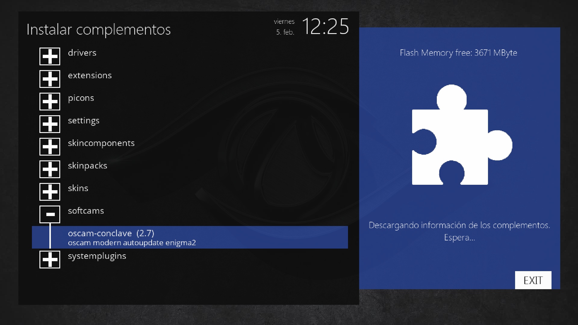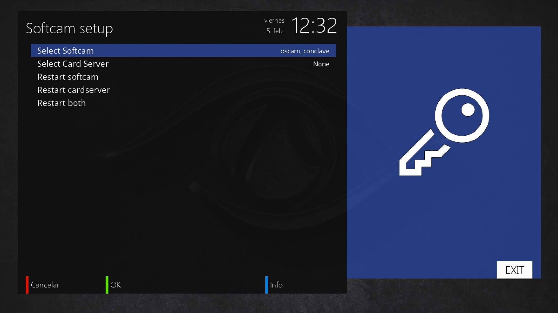 Seleccionamos oscam conclave y pulsamos boton verde para la activacion