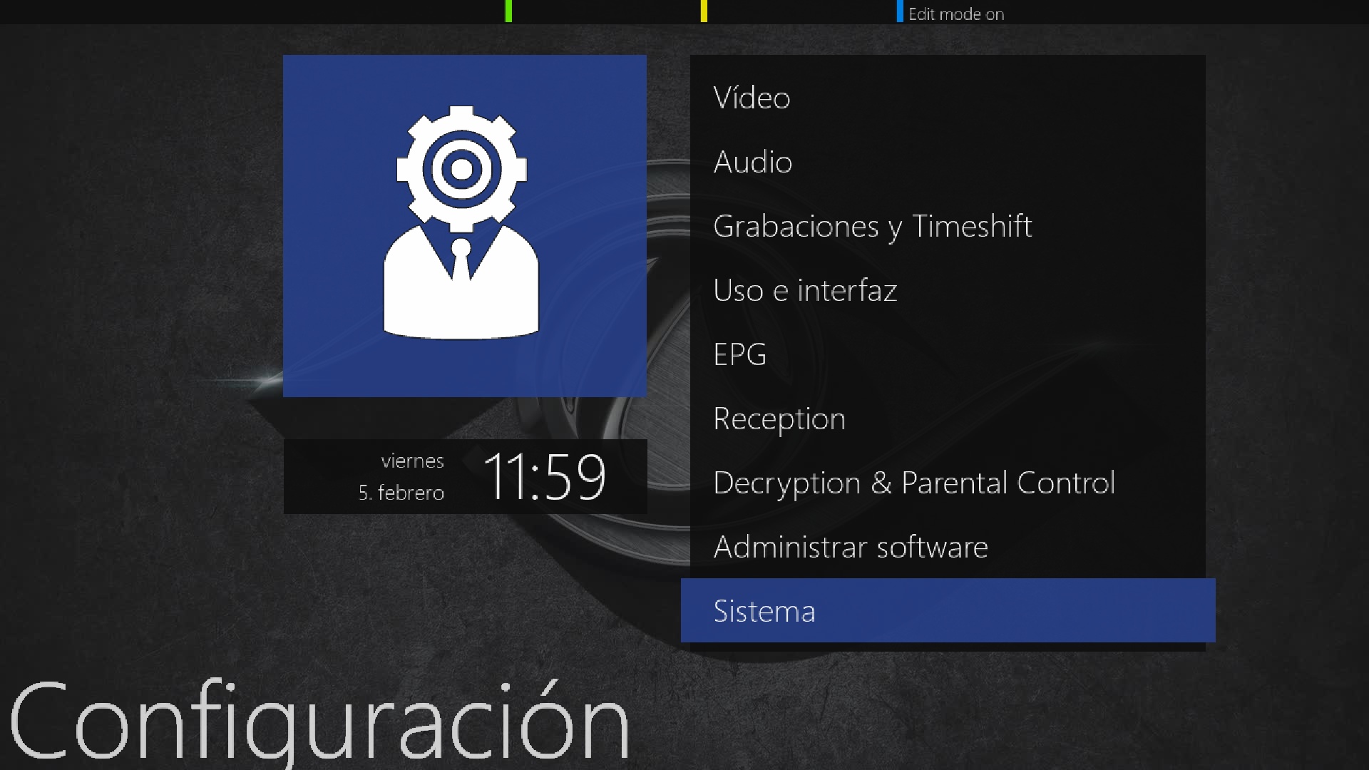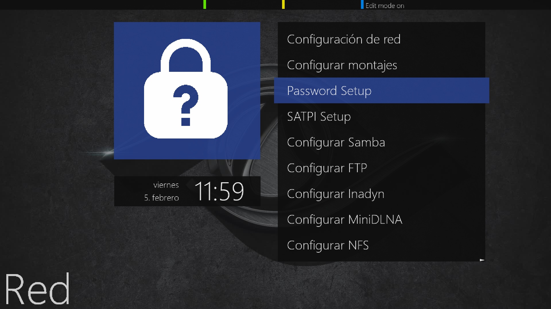 En primer lugar por seguridad vamos a poner una contraseña al receptor, para ello lo podemos realizar facilmente pulsando menu + configuracion