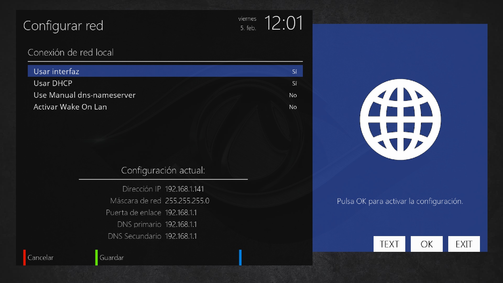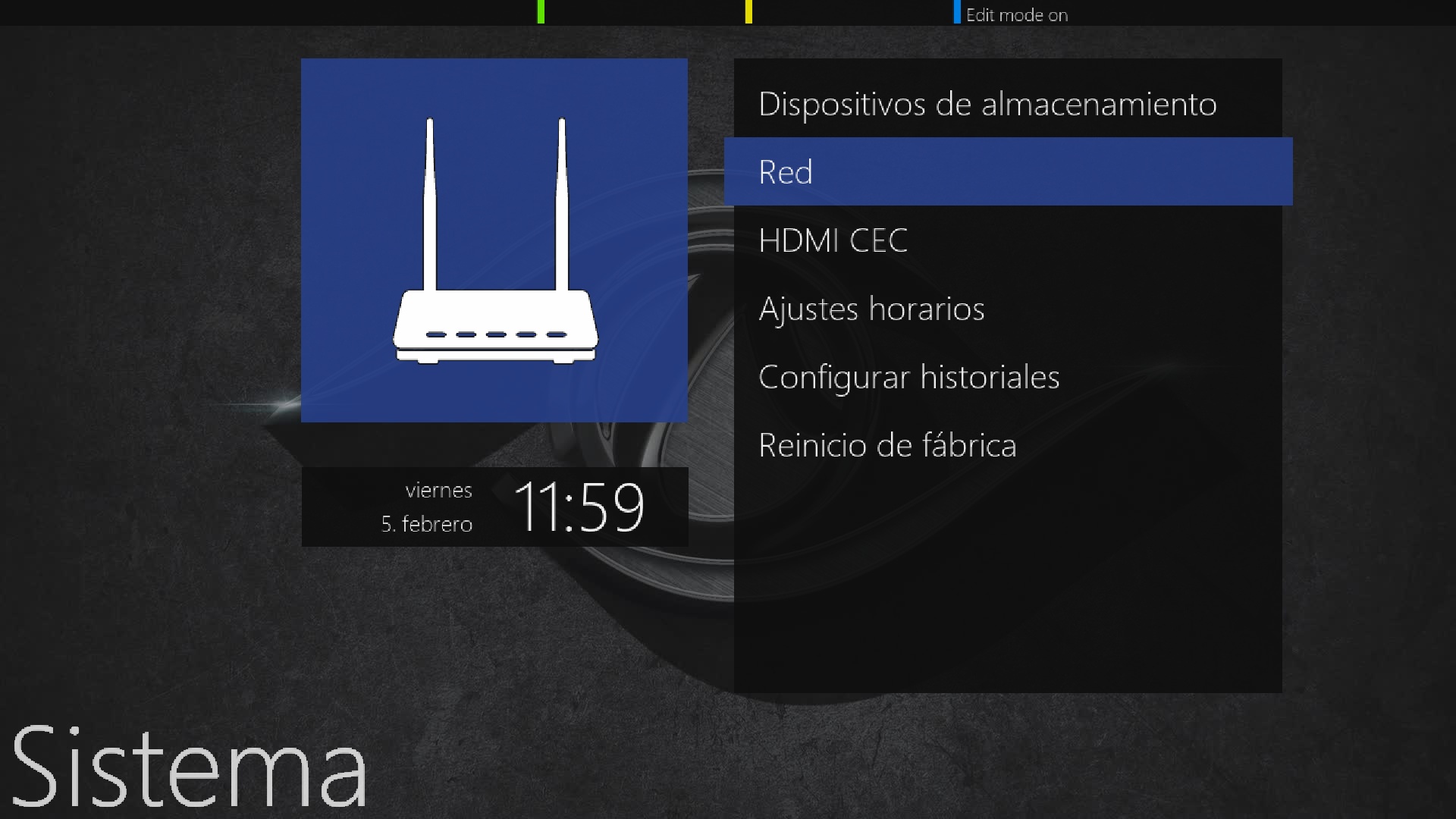 Pulsamos en menu + configuracion + sistema + red + configuracion de red