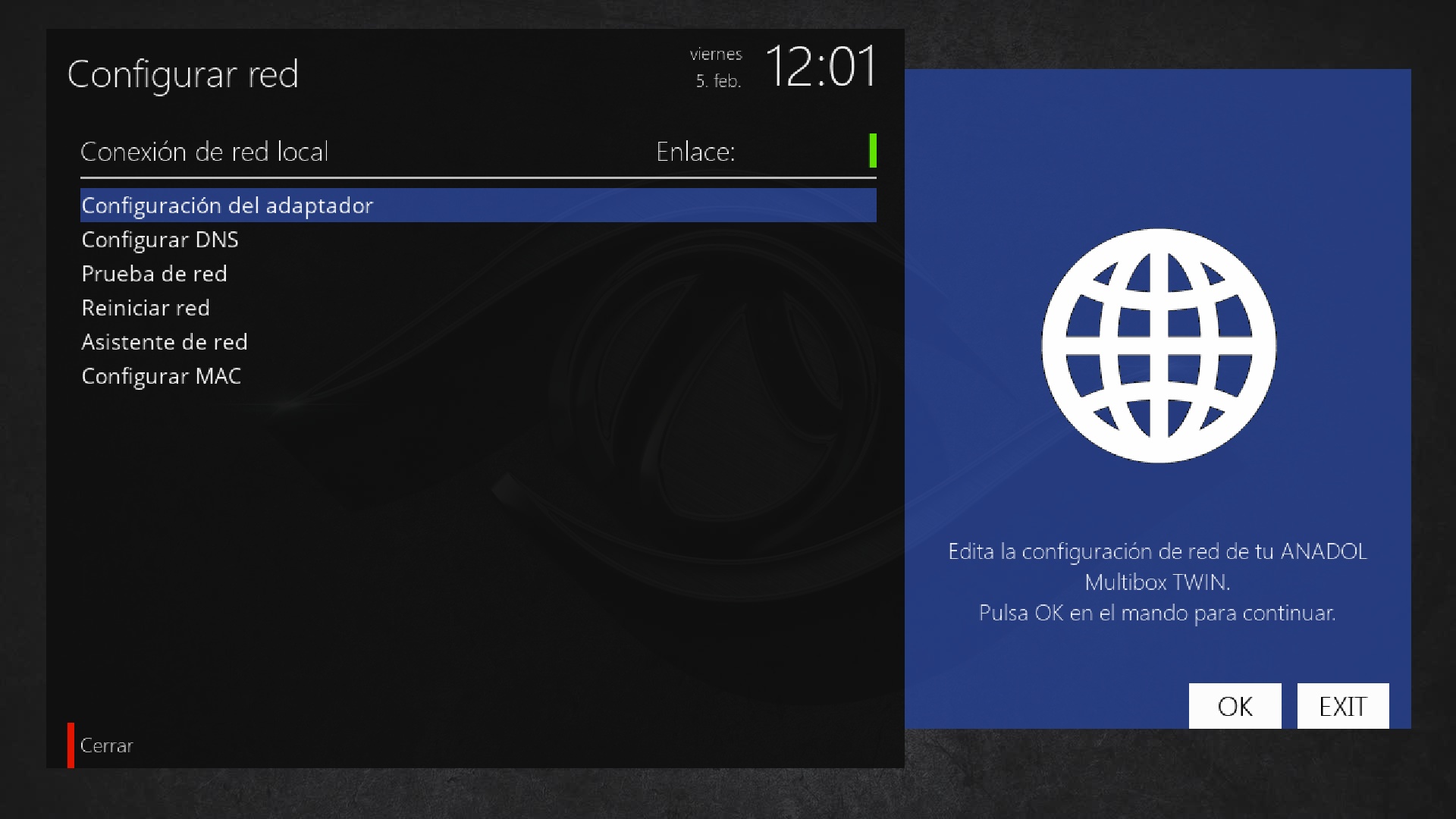 Pulsamos en configuracion del adaptador