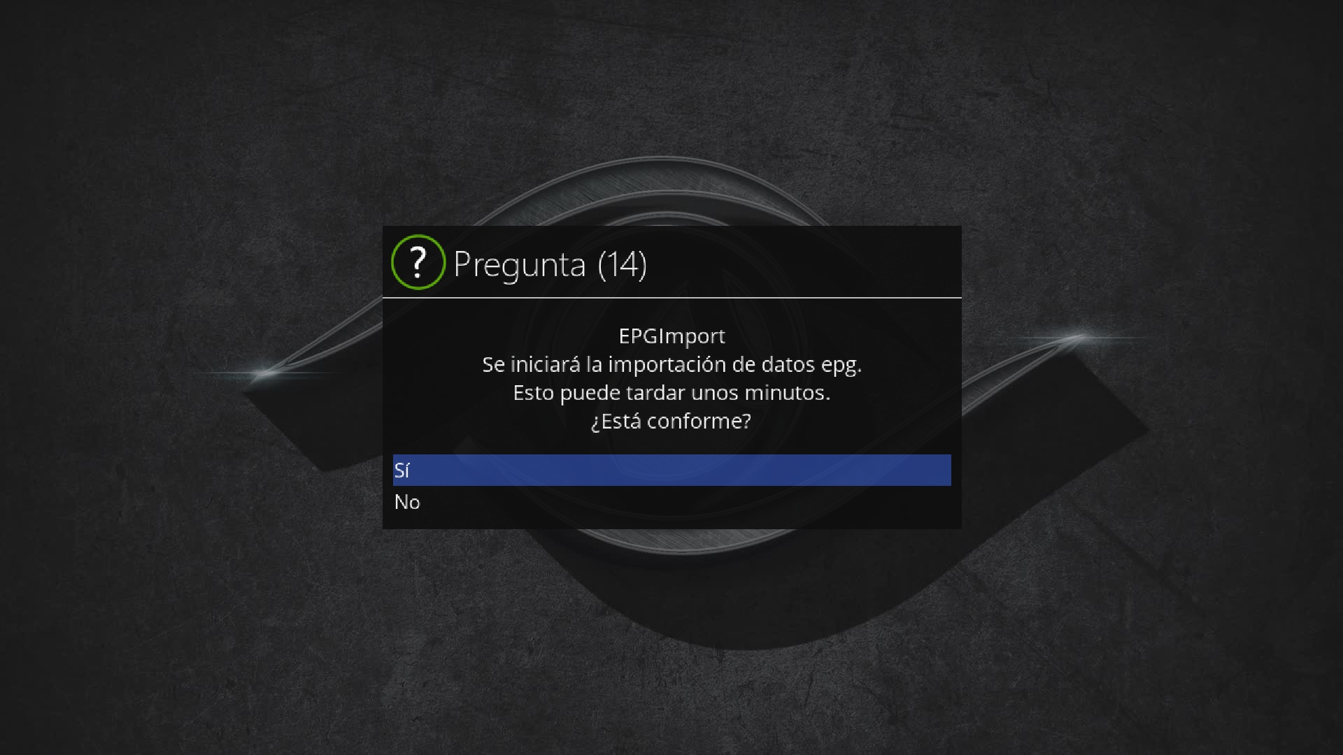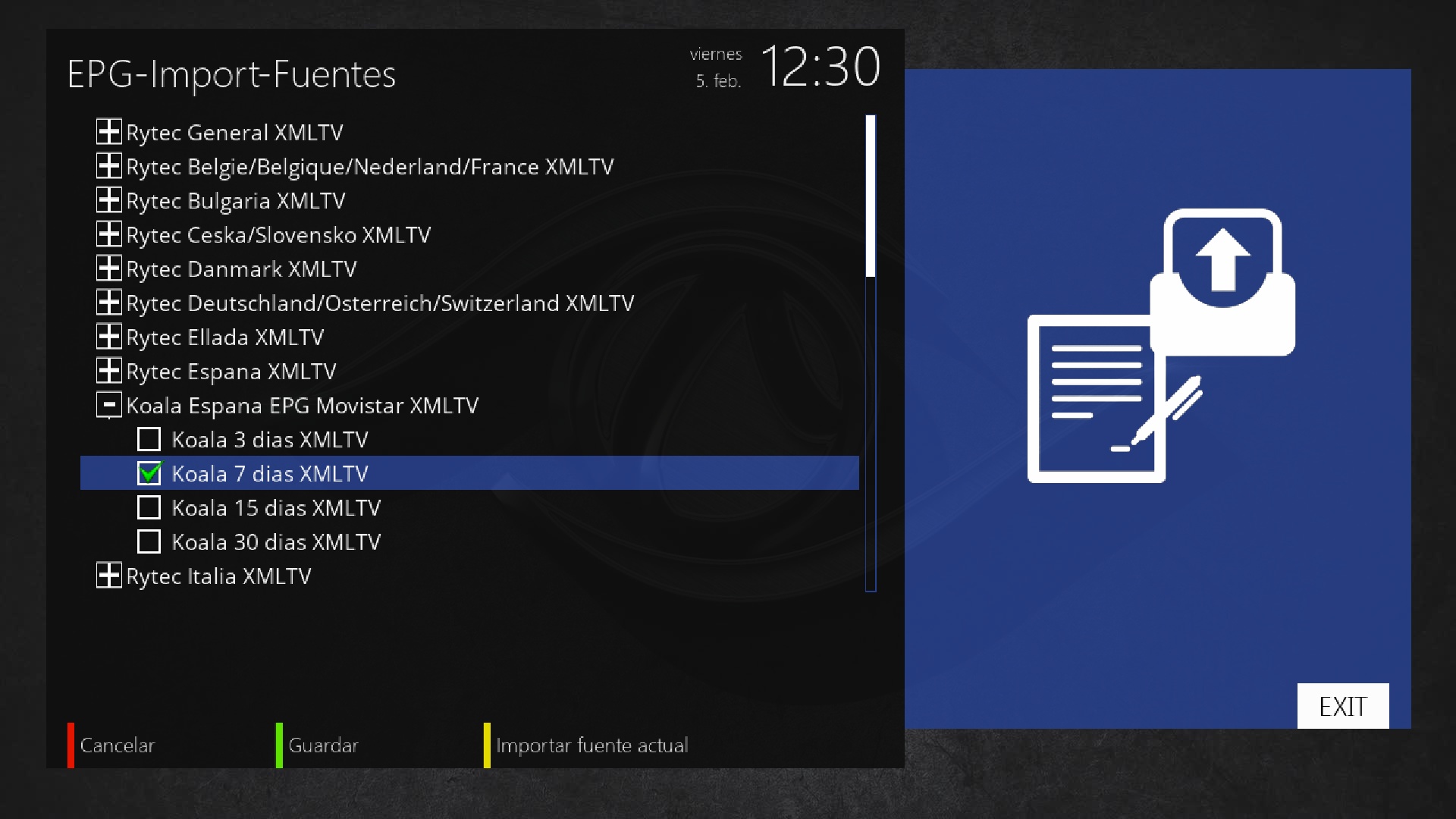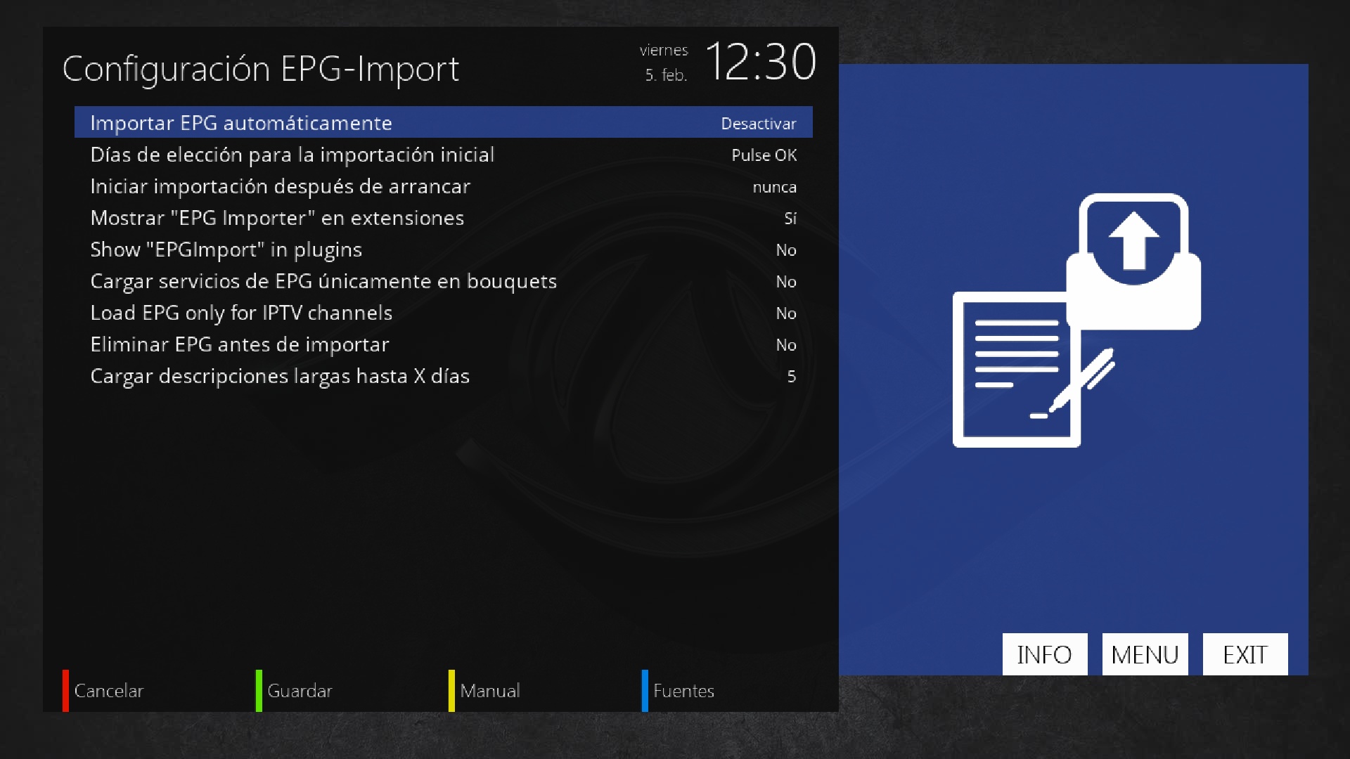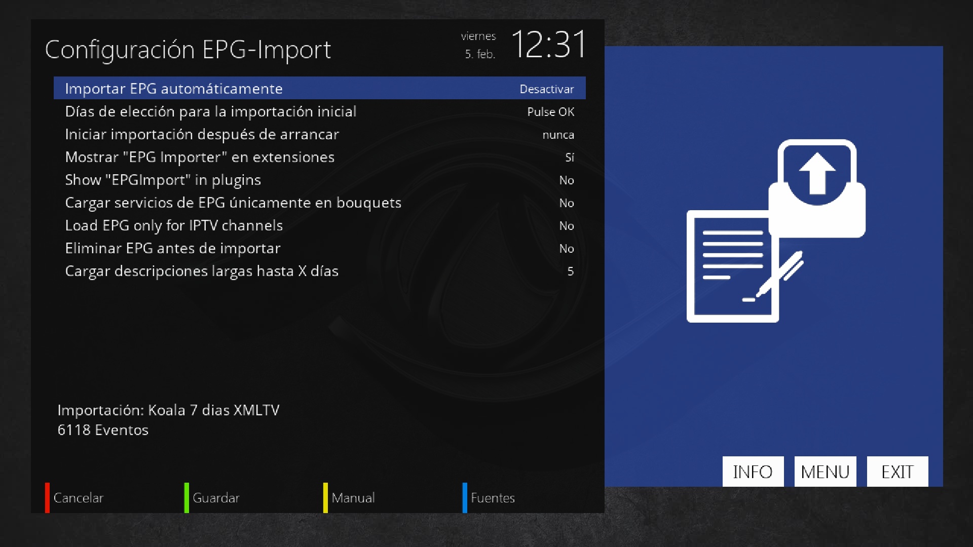 Pulsamos en menu + configuracion + epg + epg-importer