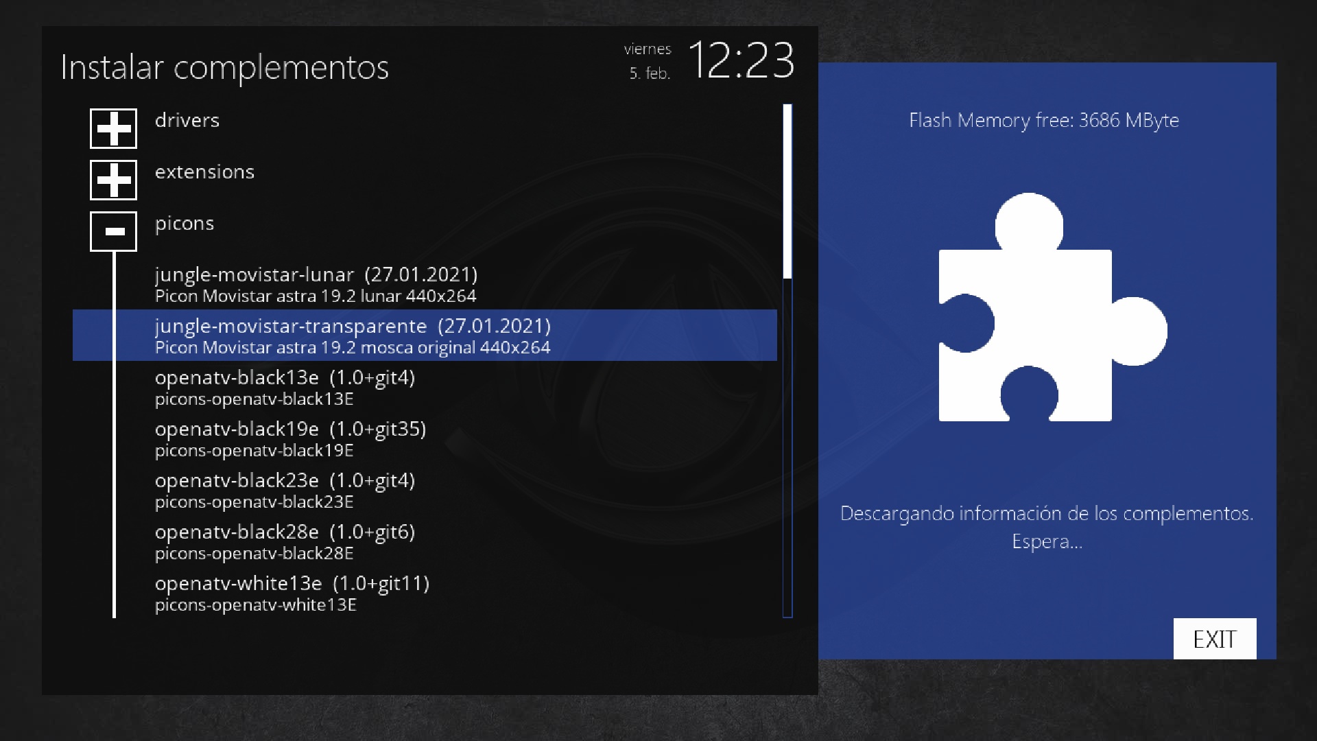 - Internal flash se instalaran en /usr/share/enigma2