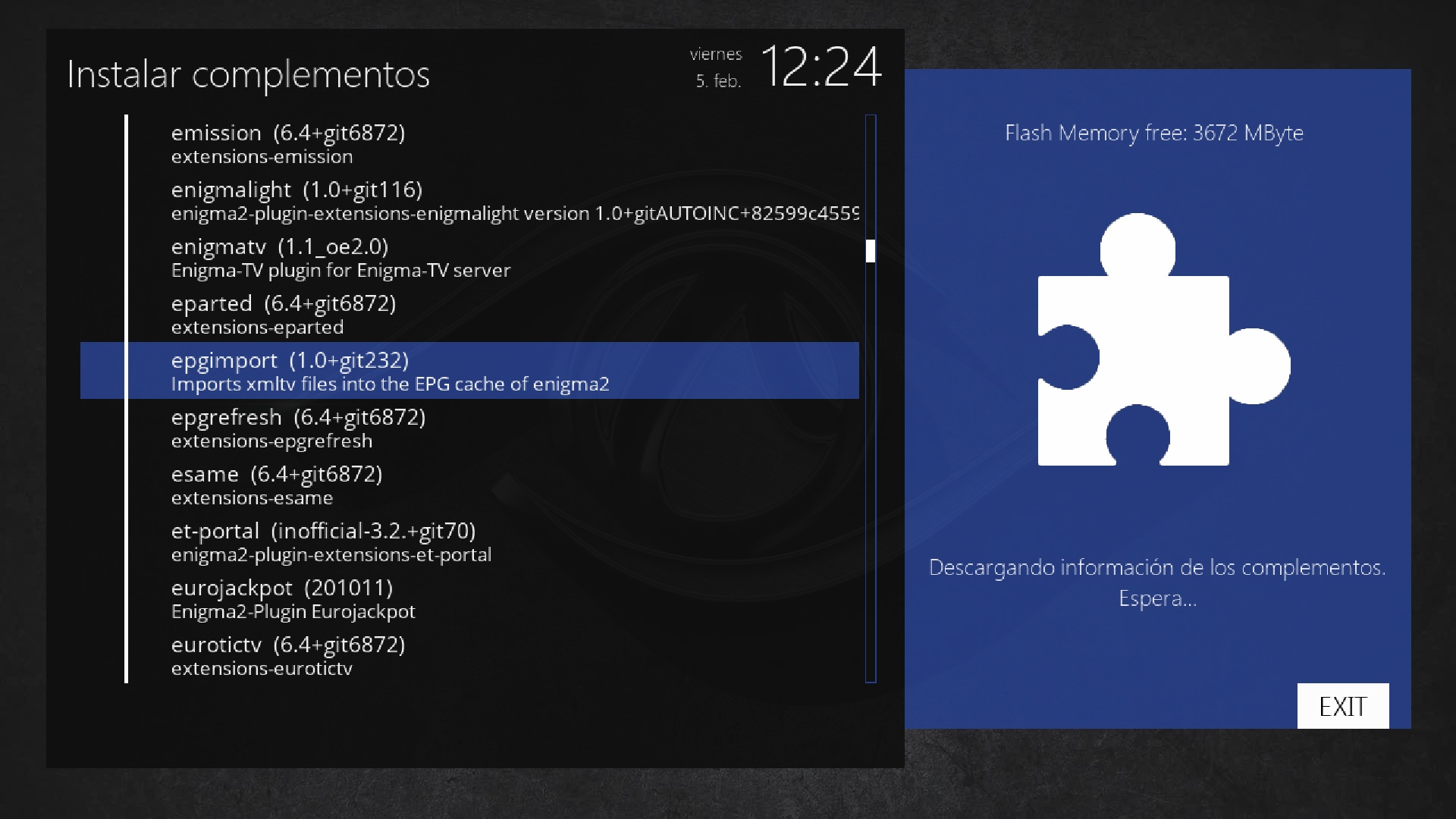 Seleccionamos epgimport y pulsamos ok