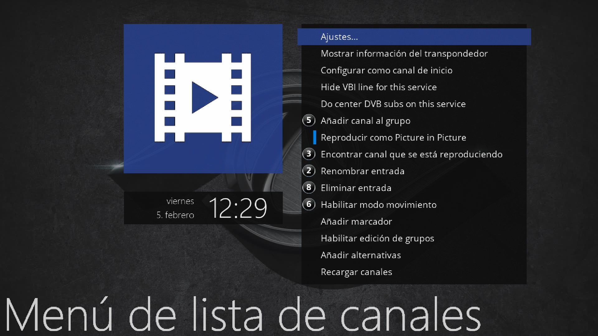 ahora pulsamos en menu + ajustes cuando estemos en la lista canales