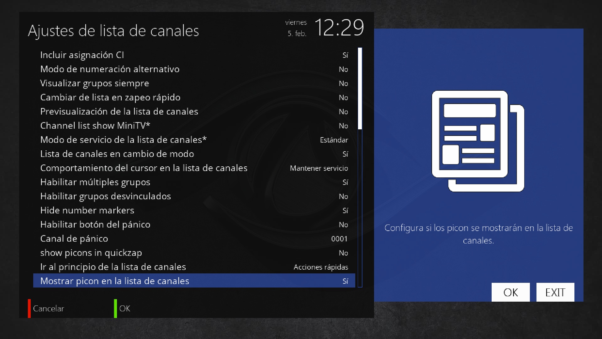 Ponemos en si la opcion de mostrar picon en lista canales