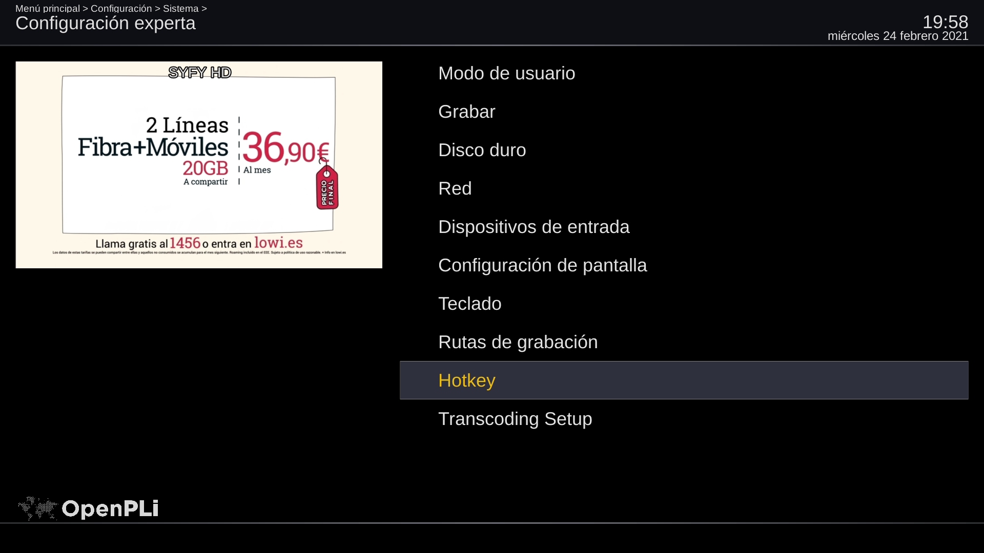 Pulsamos en menu + configuracion + sistema + configuracion experta + Hotkey