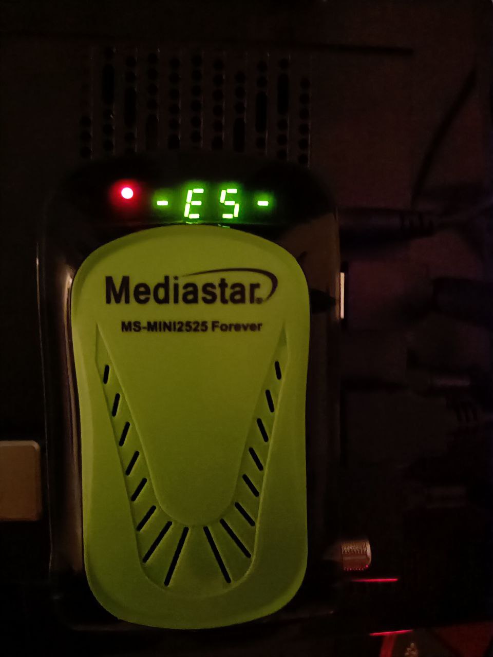 8. Encendemos el receptor de la corriente y cuando veamos en en la pantalla lcd nos aparece E5 dejamos de pulsar el boton power