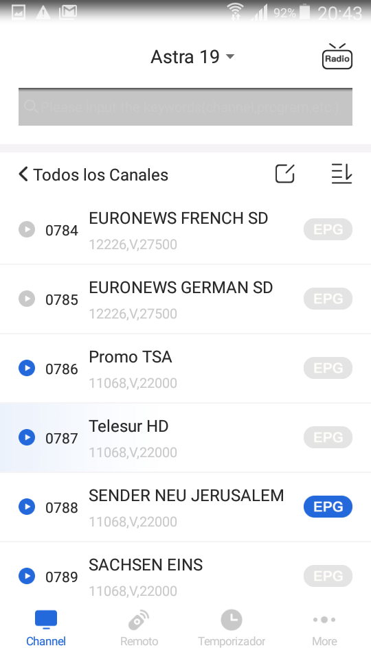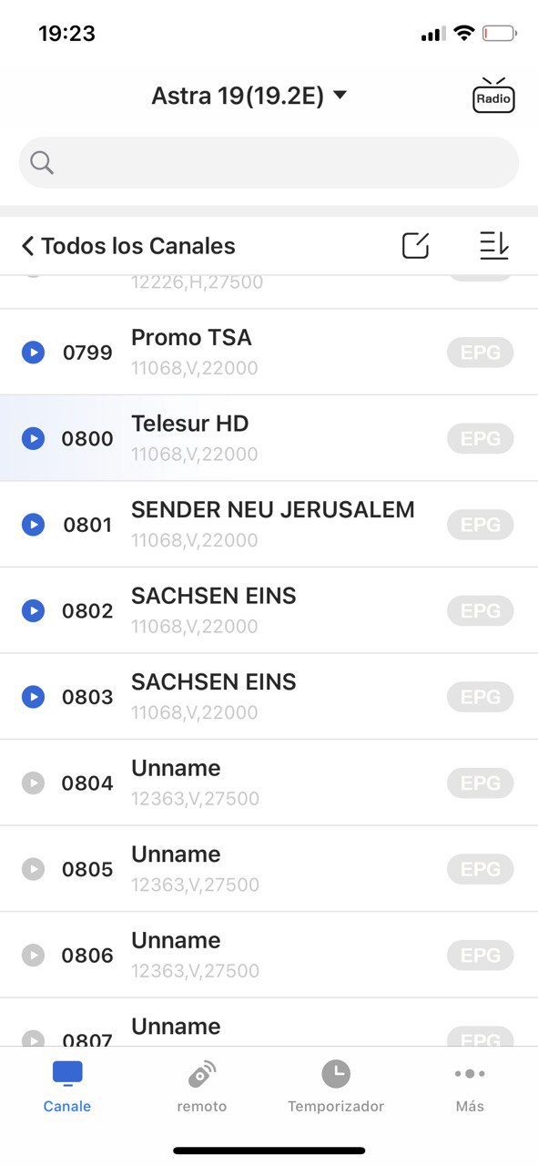 3. Pulsamos Ok sobre el mismo y nos apareceran los canales disponibles en el receptor: