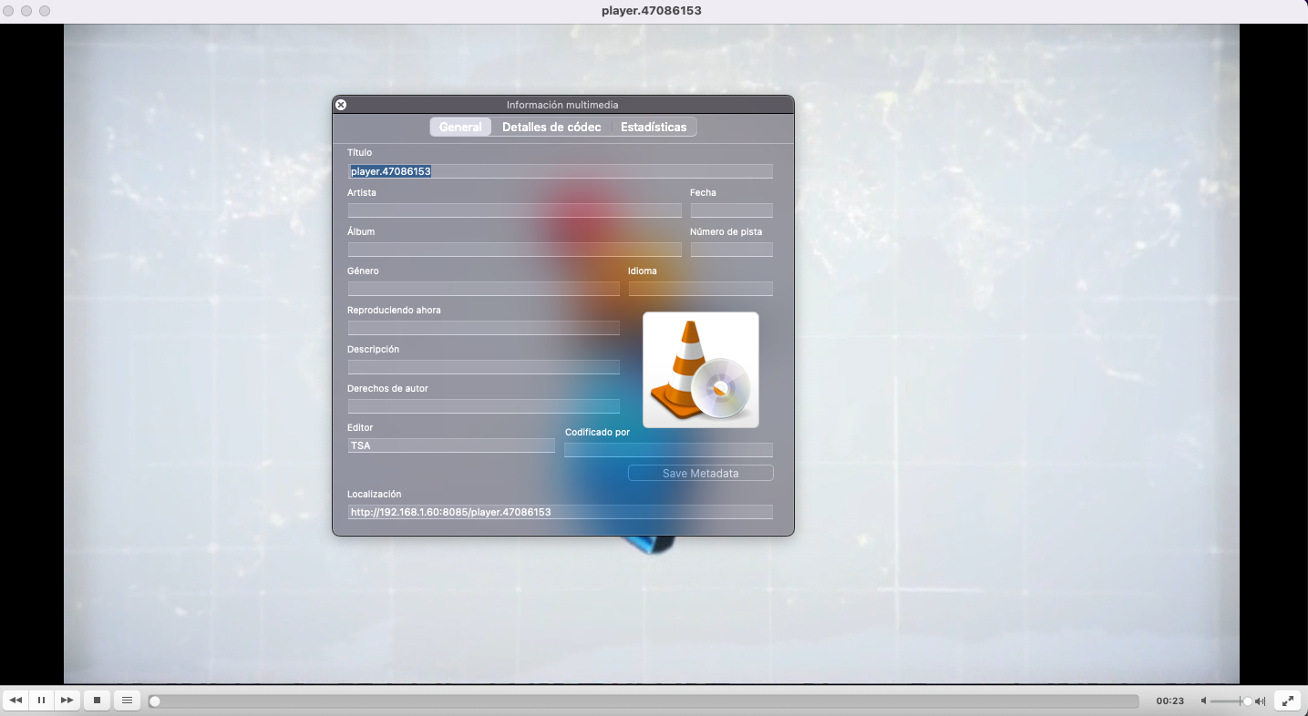 Que si probamos esta url ahora en el vlc de nuestro pc por ejemplo visionariamos el canal perfectamente: