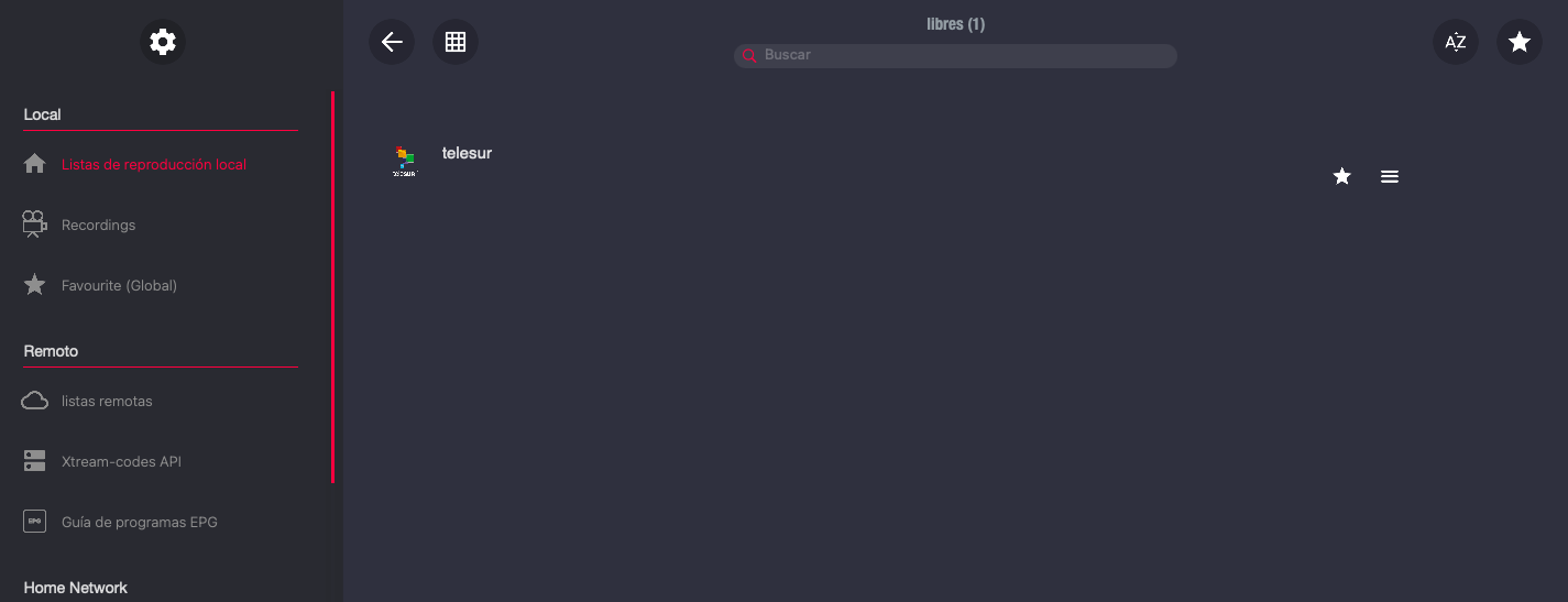 4. Ahora simplemente pulsamos sobre el simbolo play sobre un canal, en este ejemplo sobre el canal libre Telesur HD y ya lo reproducimos en el dispositivo