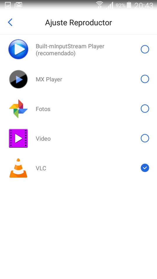 Pero en primer lugar no puedo cambiar el Reproductor una vez elegido en G-mscreen el VIark 4k Sat… no sé por qué no te deja cambiar de Reproductor para elegir VLC