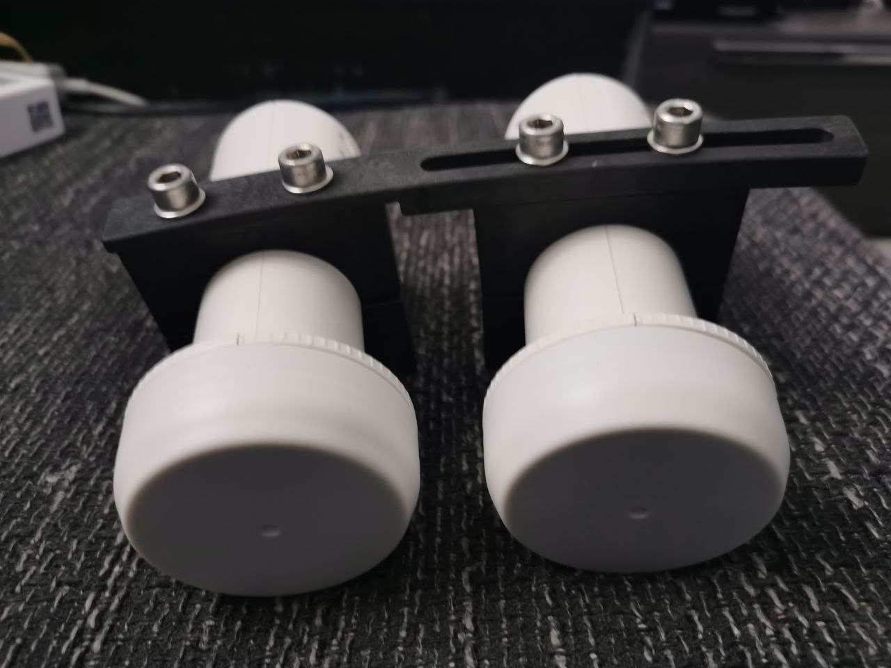 - En el caso que desees usar ambos lnb unicables en una misma antena satelite, necesitaras un soporte o hacertelo tu mismo, en este caso hemos usando un soporte vendido de amazon que podeis ver en este enlace