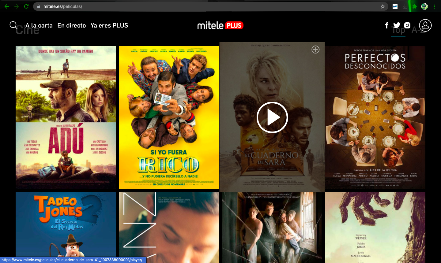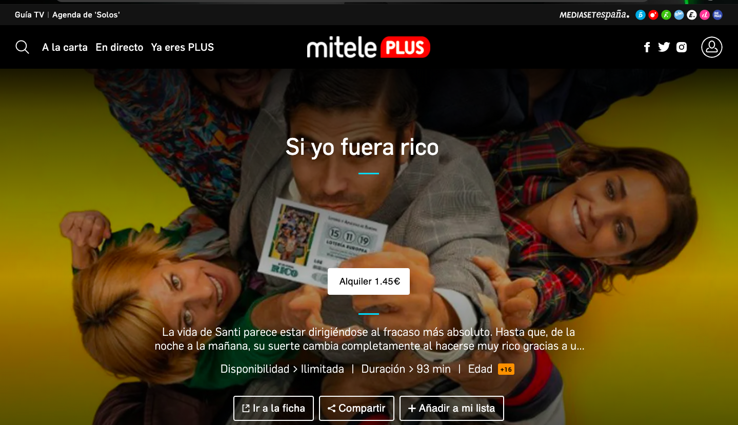 A traves de mitele tambien esta disponible la TV a la carta de cine bajo alquiler a un precio de 1.45 €