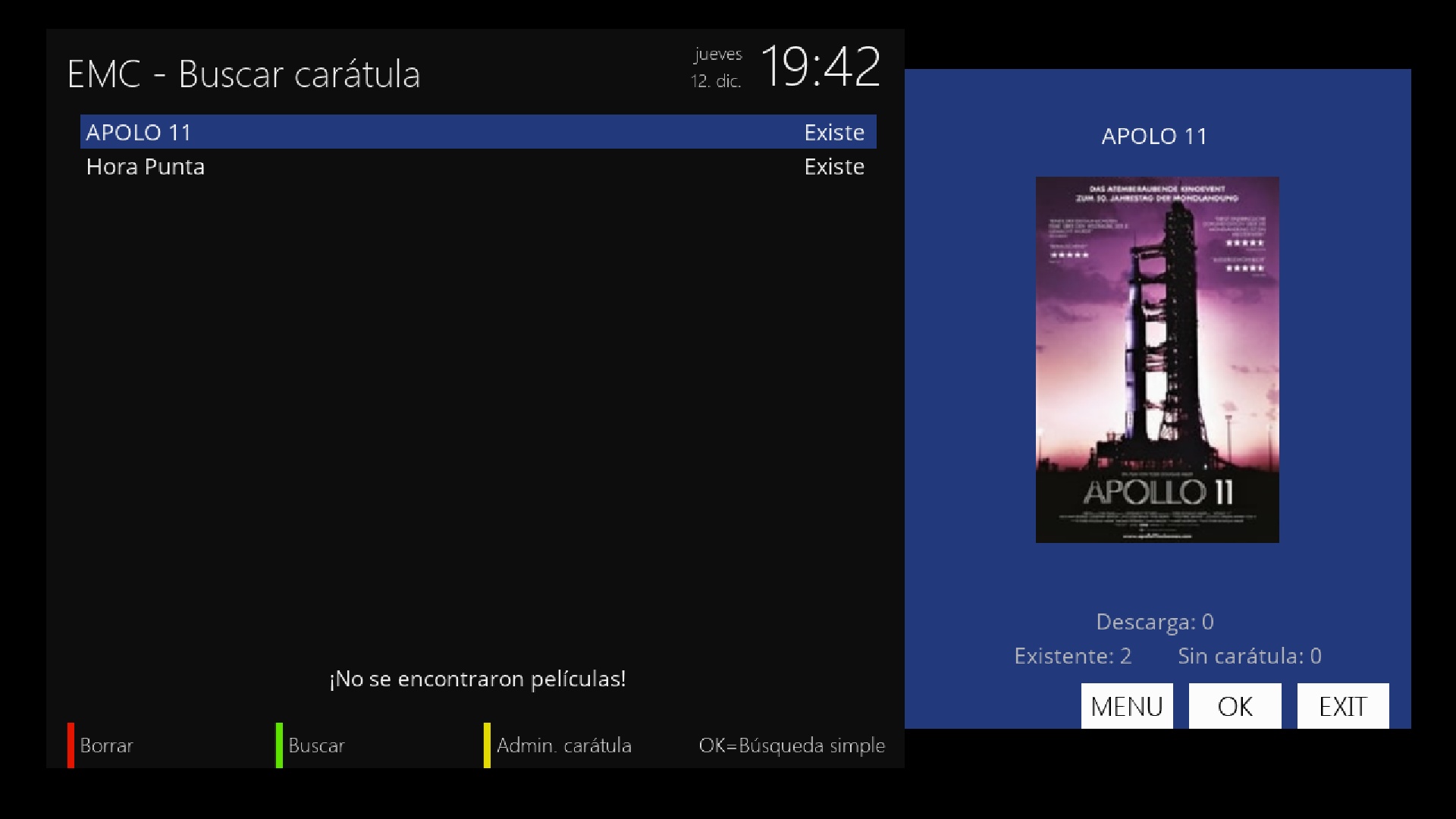 Por defecto uno de los sitios web donde busca las caratulas es themovie.org, aunque desde el menu configuracion de caratulas podemos cambiar la base de datos donde buscarlas