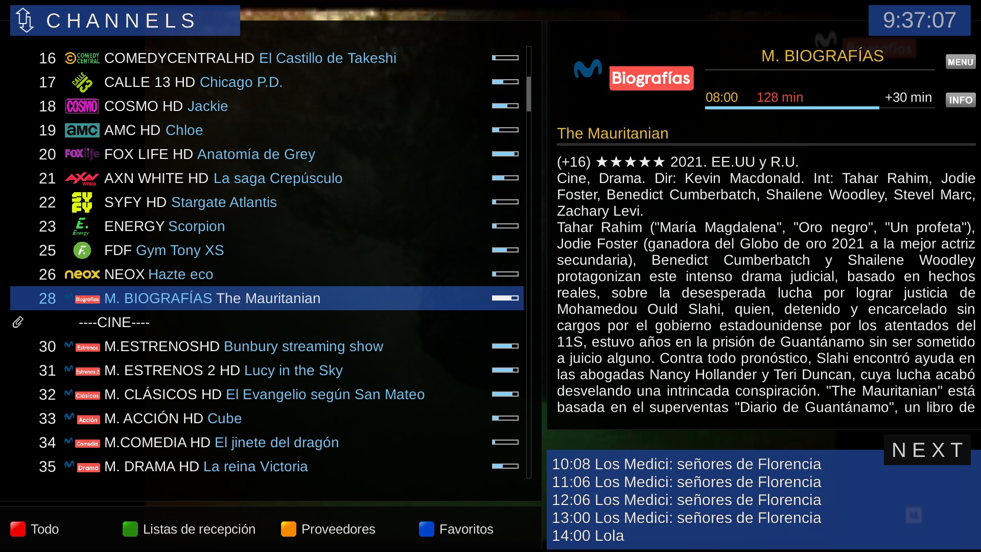 Este nuevo canal sustituye a Movistar Amenabar en el dial 28, y su duracion esta prevista que sea hasta el 14 de noviembre, donde podremos disfrutar de la biografia de diferentes personajes famosos.