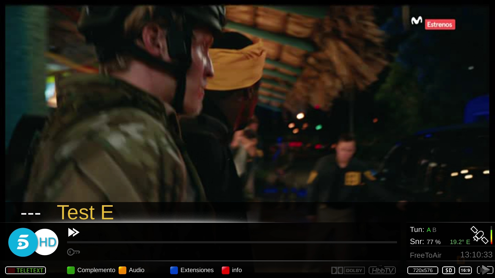 Durante unos minutos el Canal Test E ha estado emitiendo sin cifrar contenido del actual Movistar Estrenos como se puede observar en la captura, pasando a los pocos minutos ya a cifrado y a no poderse visualizar.