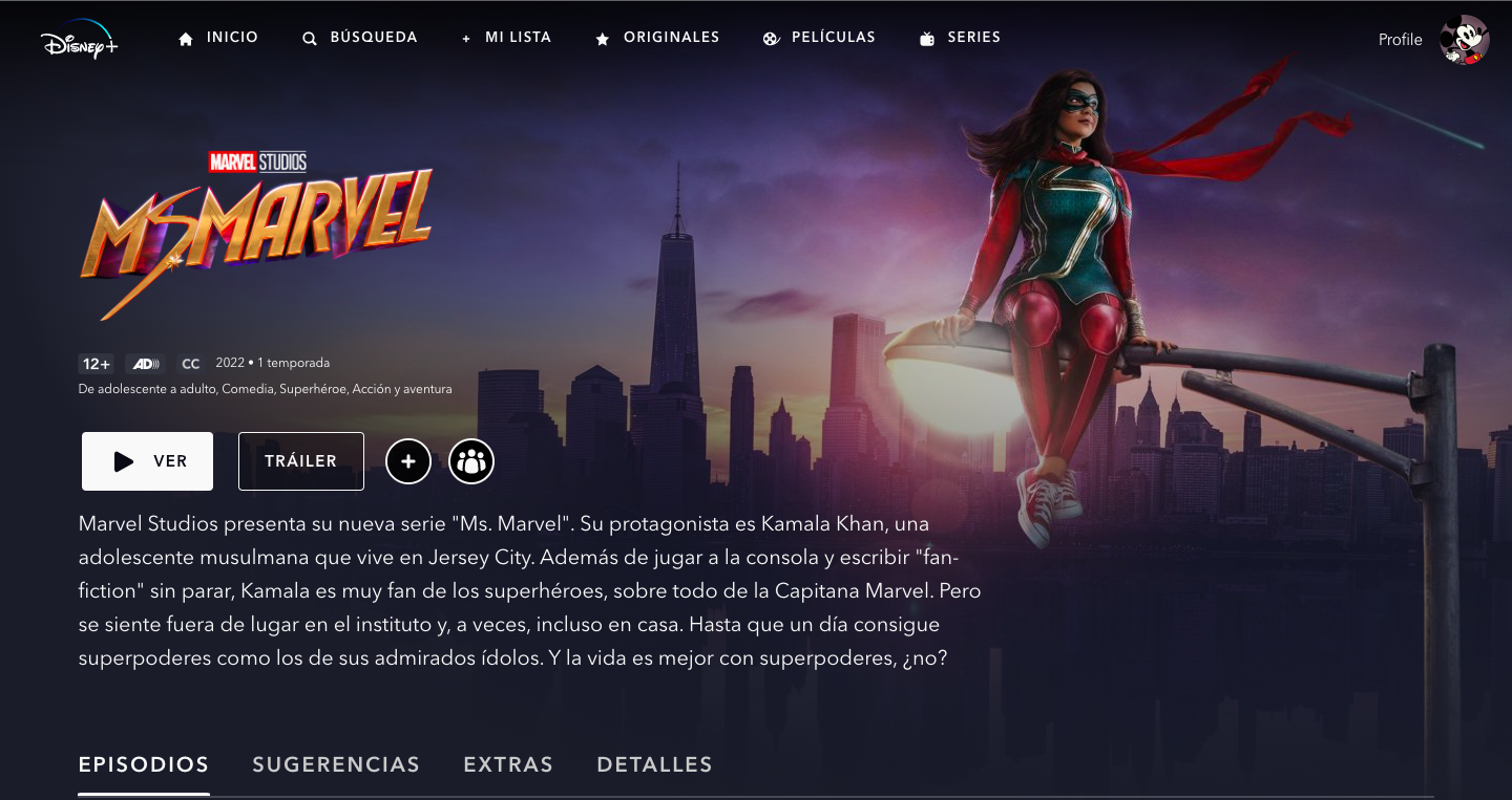 La nueva serie de ficción para la plataforma de ‘streaming’ de Disney introduce a una nueva superheroína adolescente en el Universo Cinematográfico de Marvel, una joven de 16 años estadounidense y musulmana que vive en Jersey City y que es una absoluta fan-girl del mundo de los superhéroes hasta que descubre que ella también es una de ellos.