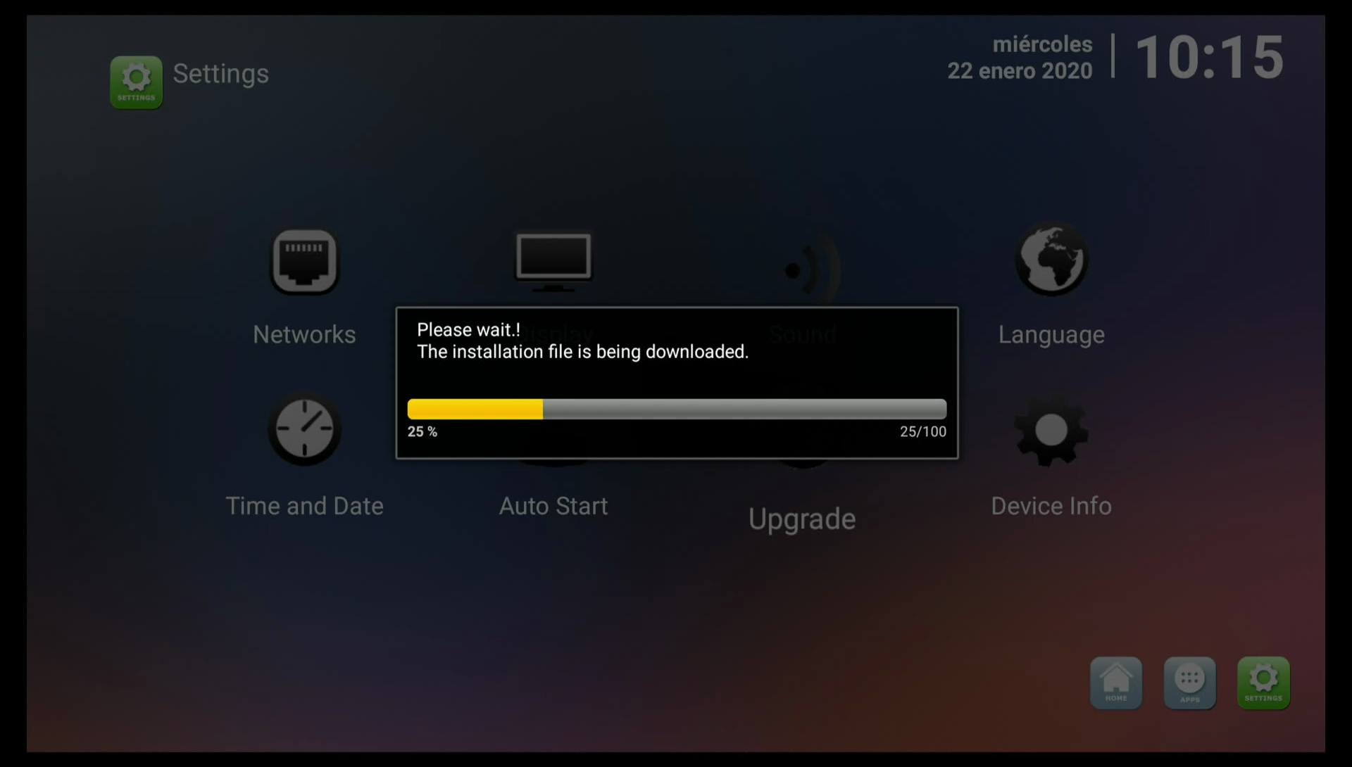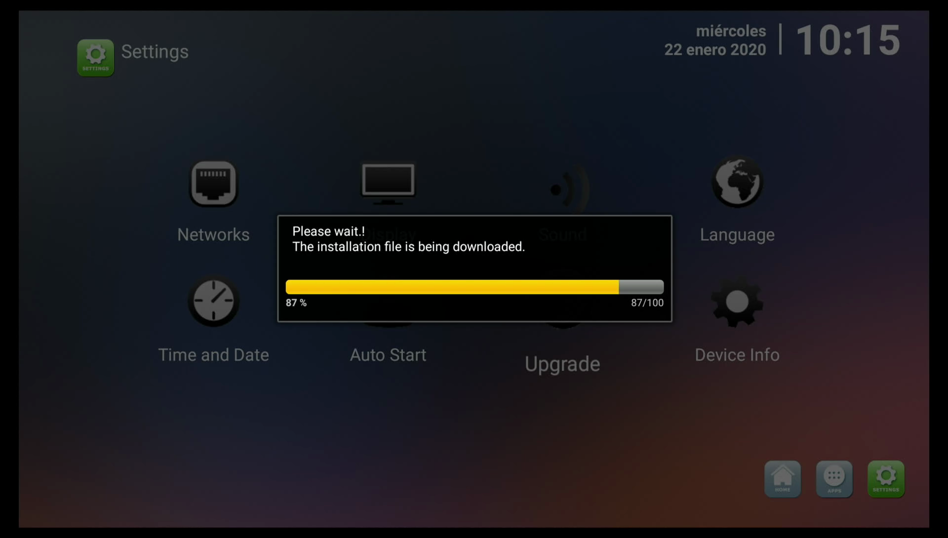 En el caso de existir una nueva actualizacion de la aplicacion del sistema comenzara en primer lugar la descarga del mismo