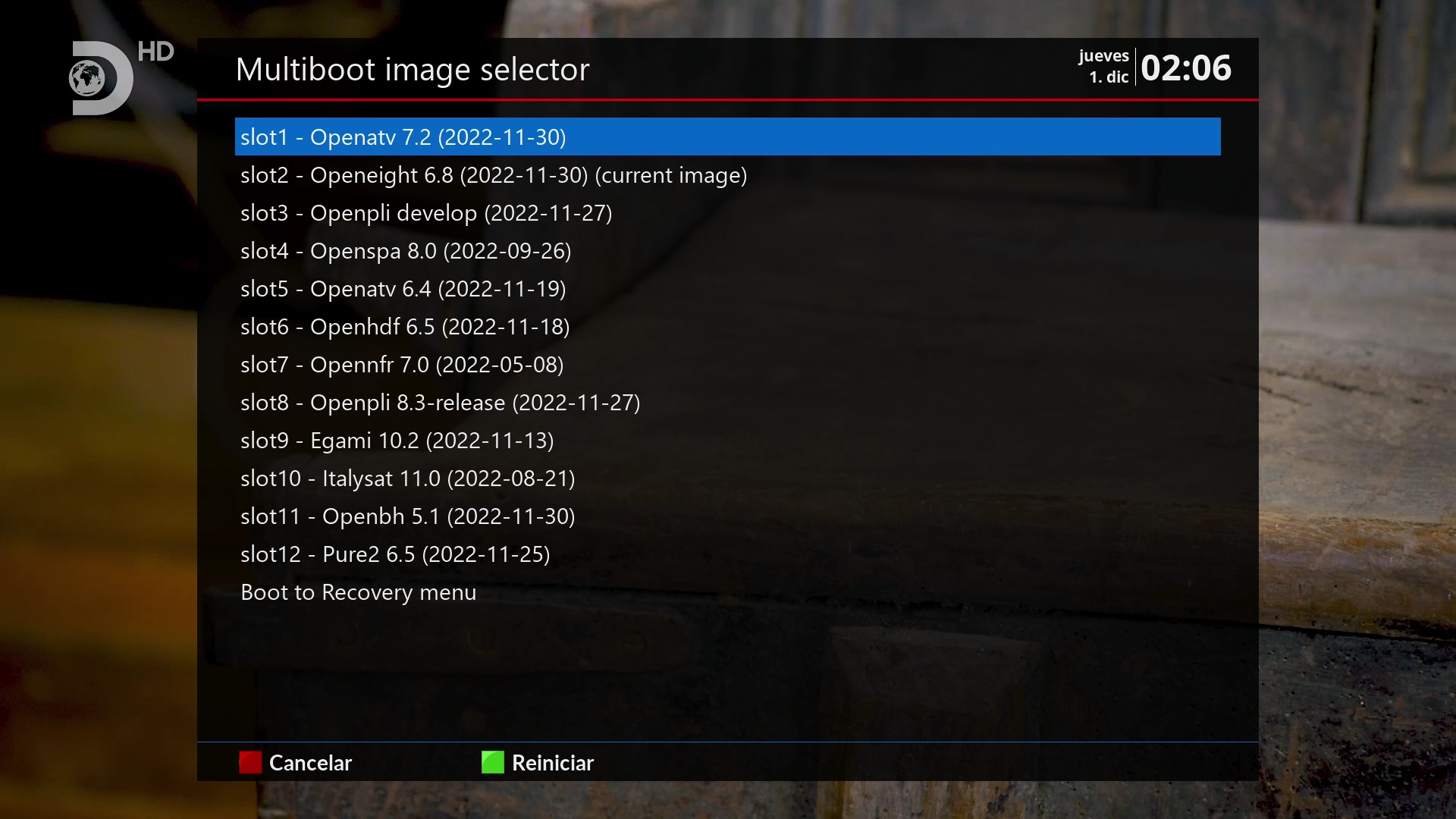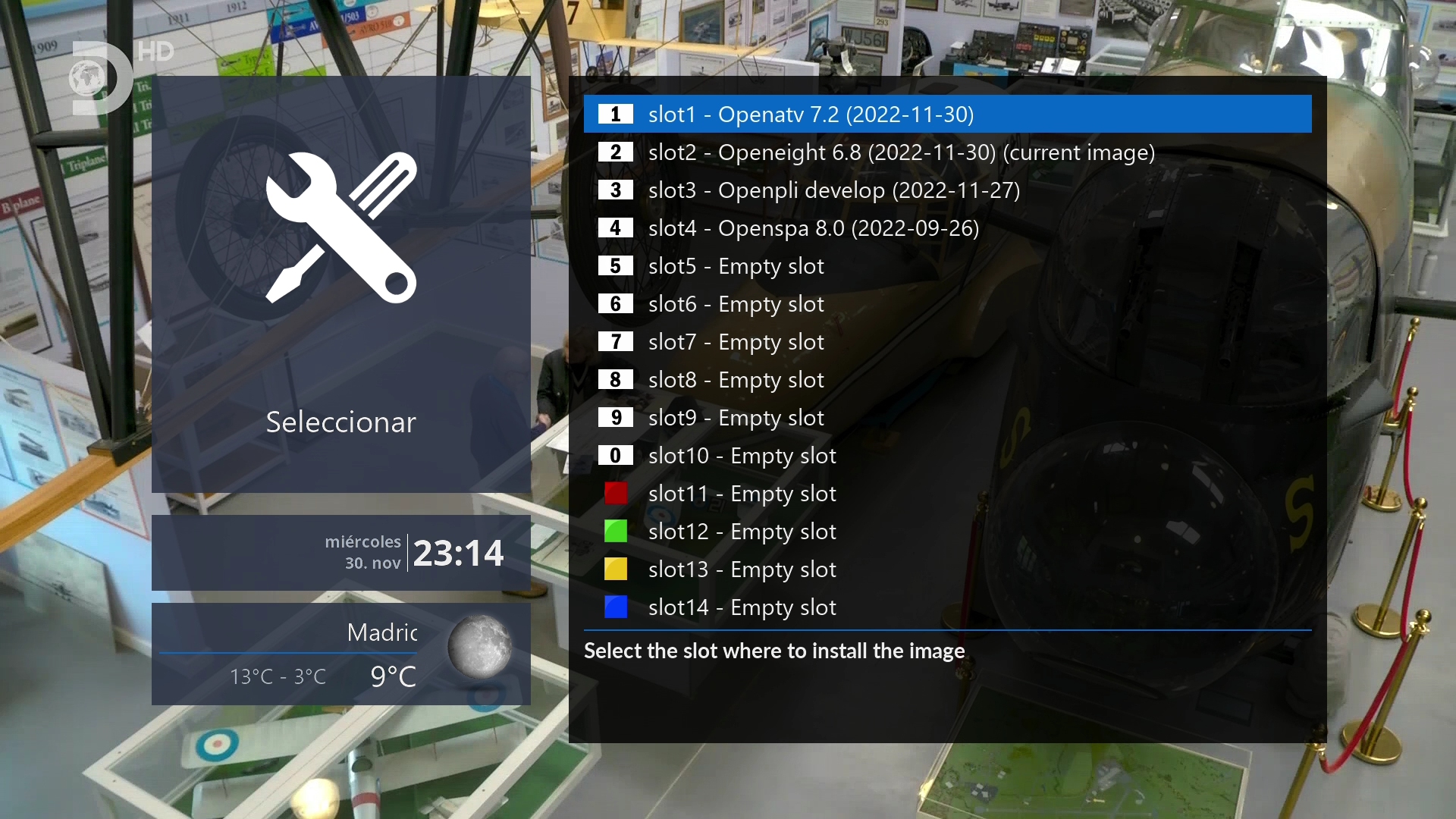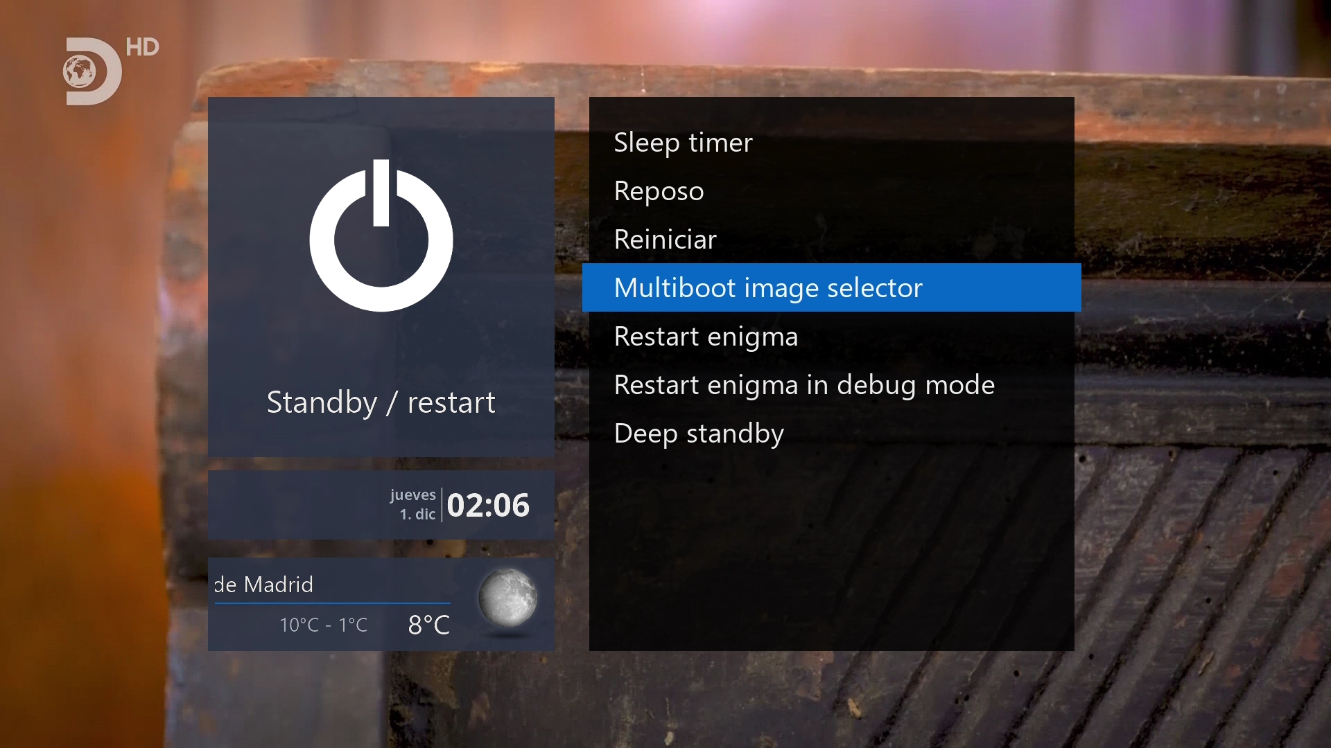 Para iniciar el receptor en imagen instalada en las particiones del receptor, simplemente nos situamos en el menu apagado del receptor y seleccionamos multiboot imagen selector